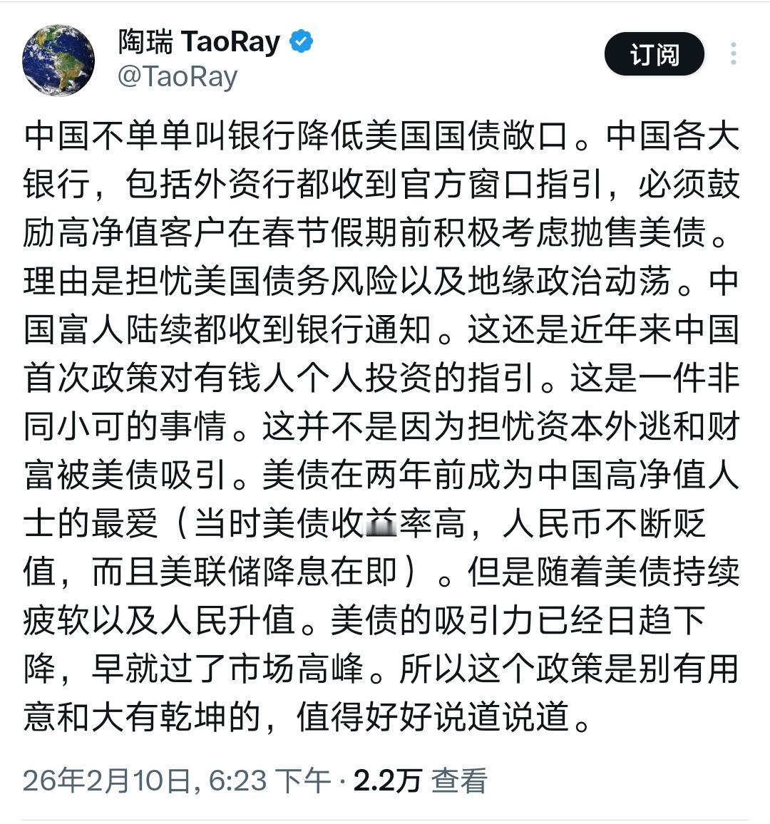 哇此举非常罕见,细思极恐啊! 窗口指导到“个人资产配置”这一层,信号已经很清楚了:这不是收益判断,是风险与博弈判断,方向比利率更重要。 静待下一步如何! Source: X