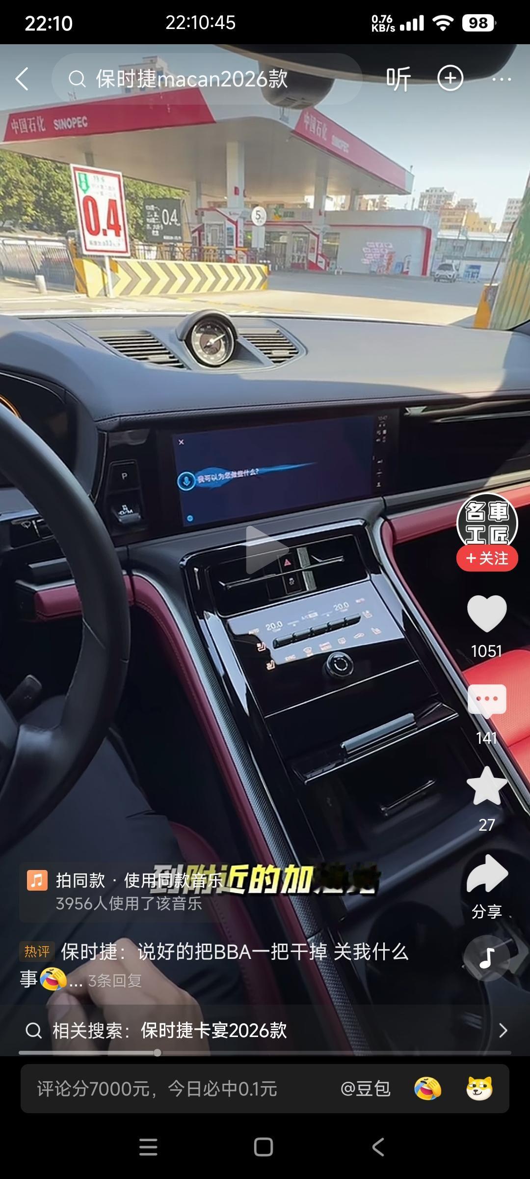 价值百万的保时捷智能化如何?名车工匠做了一个小测试, 他来一辆保时捷到加油站旁边,然后对车机说:帮我导航到附近的加油站? 车机给他的回复是:抱歉,未找到符合的地点! 名车工匠哈哈大笑。 确实很搞笑。这种情况几万块钱的国产车都能轻松完成。 我猜逻辑是这样的:让车机搜索“附近的加油站”,因为智能化程度低,无法准确理解用户的需求,只能简单的理解字面意思,没有找到加油站名字叫“附近的加油站”。 保时捷依然是保时捷,在电动化时代它依然没有太多的改变。看来欧洲汽车在智能化方面有点落伍了! 以前动力强力,操控好,内饰豪华,现在都不是优势了! 智能化才是新时代的需求。