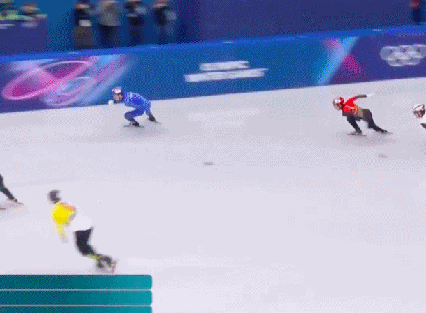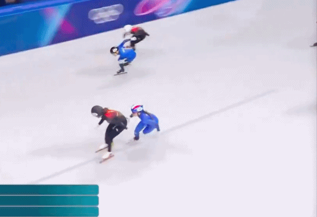 如果此刻能保持住第2,中国队依然有机会再次反超意大利,夺回第1名,但随后男选手孙龙或许是太过着急想赶超,在第8圈弯道超越时,没能控制住平衡滑倒,险些摔出赛道。