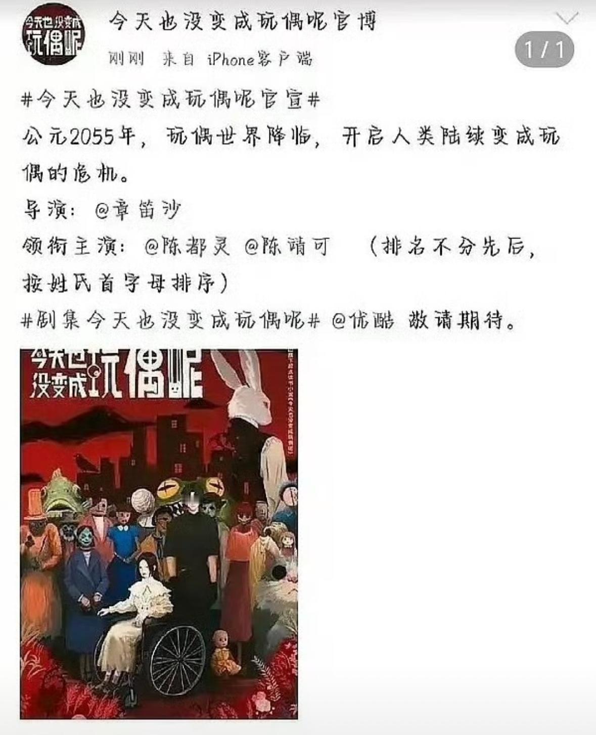 今天也没变成玩偶呢出现了好几个“官博”,有一个宣了陈都灵和陈靖可平番。啥情况?