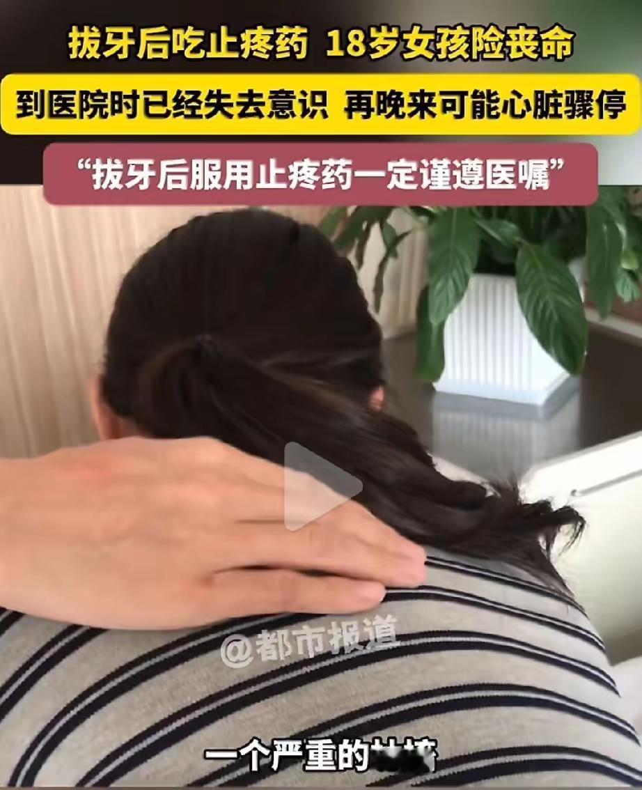经治疗这位姑娘安全无恙,拔牙是再普通不过的小手术,但术后的护理和用药绝不能想当然。如果拔牙后疼痛难忍,最正确的做法是先尝试物理止痛,比如用冰袋敷在肿痛的脸颊上,这能有效收缩血管,减轻水肿和疼痛。如果实在需要吃药,必须征得大夫同意,千万不要自做主张用药,否则后患无穷。
