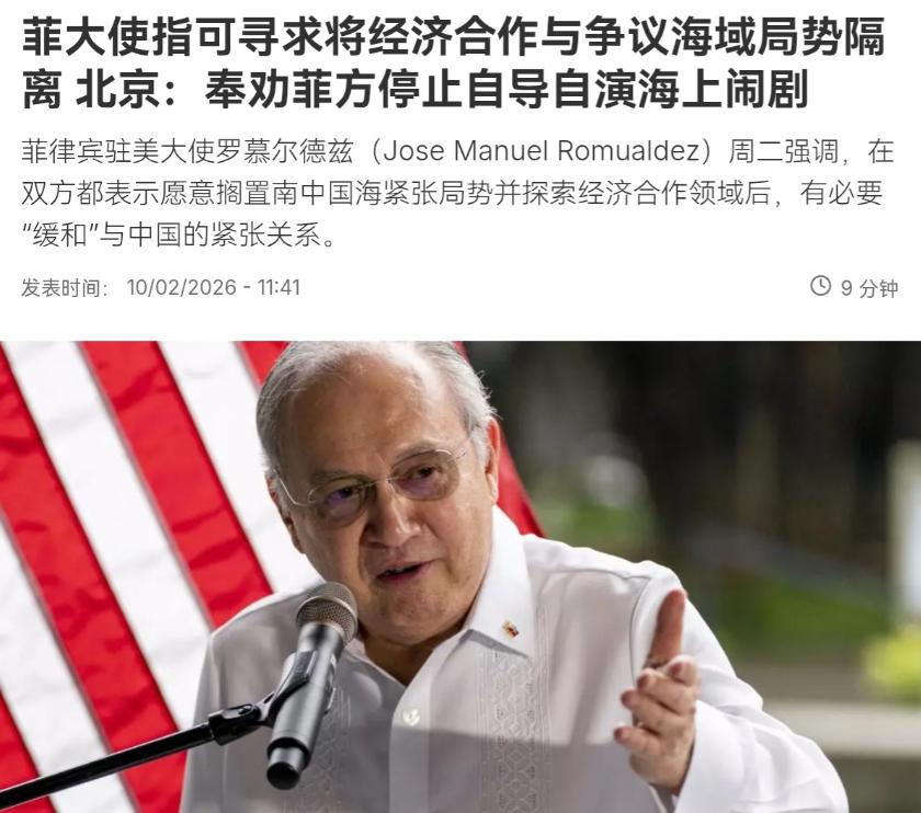 菲律宾对我们喊话,希望跟我们谈合作!2月10日,菲律宾驻美大使罗慕尔德兹表示,马尼拉与北京的关系不应仅仅由海上争端来定义,我们一直在与他们(中方)进行双边对话,我们将继续进行对话,并探讨如何开展合作,尤其是在经济领域,这就是我们想做的。 有一些迹象表明,我们的中国朋友们也准备好看到一些机会,我们可以合作。缓和摩擦,对于确保中国全面参与最终敲定拖延已久的“南海行为准则”至关重要。而对于南海局势,你知道,这是可以隔离开来的。 很显然,菲律宾这波喊话说白了就是揣着明白装糊涂,一边在黄岩岛、仁爱礁一而再再而三地搞挑衅,前阵子还把黄岩岛划入联合军演区域,甚至中方好心救了他们落水的21名船员、成功救起17人,他们不仅不真心感激,还反过来污蔑中方不尊重所谓“菲律宾专属经济区”。 转头就让驻美大使罗慕尔德兹出来放软话,说中菲关系不应只由海上争端定义,要继续对话、重点搞经济合作,这话听着客气又诚恳,本质上就是馋中国的经贸合作红利,算盘打得能传到南海那边去。 别看他们在海上跳得欢,经济上离了中国可真玩不转,2024年中菲双边贸易额就达到了716亿美元,中国不只是他们最大的贸易伙伴,还是最大的进口来源地和第二大出口市场。 就连他们出口的机电产品,占比都超过了一半,这些产能大多要靠和中国的产业链合作才能稳住,要是没了中国市场,他们很多产品都没地方卖,国内相关产业估计得立马陷入困境。 而且中国一直在实实在在帮他们搞发展,中国交建在菲律宾帮他们建达沃-萨马尔岛跨海大桥、修马尼拉南北高速连接线,就连他们想发展的菌草产业,都是中国帮忙出技术、建示范中心。 还有漳州和菲律宾巴丹省的“两国双园”,专门合作食品加工、海洋经济这些领域,相当于中国在帮他们搭平台、找路子,这些合作带来的实惠,菲律宾心里比谁都清楚。 再看菲律宾自己的经济状况,2025年他们的GDP只增长了4.4%,连自己定的5.5%到6.5%的目标都没达到,第四季度增速更是跌到了3.0%,创下全年最低,虽然全年通胀率降到了1.7%。 但经济压力依旧不小,政府欠的债已经超过了GDP的六成,根本没足够的钱搞基础设施建设,只能靠吸引外资,而中国无疑是最靠谱、最有实力的合作伙伴。 他们嘴上说南海局势可以隔离开来,其实心里门儿清,要是真把中国得罪死了,经贸合作黄了,他们的基础设施建设会停滞,农产品出口会受影响,国内就业和经济增长都会出大问题。 所谓的“缓和摩擦、推进南海行为准则”,不过是个好听的借口,核心就是想一边在海上保持挑衅姿态,刷点存在感、向美国表表忠心,一边稳稳抱住中国的经贸大腿,靠中国的投资和合作稳住自己的经济。 毕竟菲律宾之前也试过找其他国家合作,但要么投资不到位,要么技术跟不上,远不如和中国合作来得实在高效,就像他们放开外资限制,鼓励外国承包商引进专业人员,说白了就是想吸引中国企业多去投资,帮他们拉动基础设施发展。 这种又要挑事又要获利的双标操作,属实有点贪心,明明在黄岩岛、仁爱礁的挑衅已经影响了两国互信,却还想在经贸上捞好处,也不想想,没有诚意的对话,就算谈再多,也很难真正达成合作。 不过话说回来,他们之所以急着喊话谈经贸,说到底还是自己的经济扛不住了,只能转头求着中国给机会。