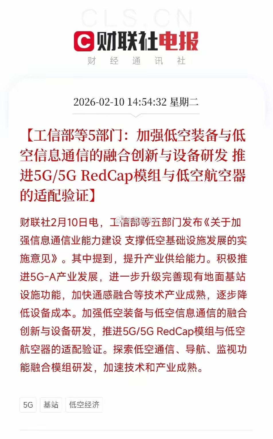 明日重点关注三个方向!为什么?1. AI语料+AI漫剧!AI语料+AI漫剧!AI语料+AI漫剧!2.影视传媒!影视传媒!影视传媒!2. 低空经济!低空经济!低空经济!核心逻辑和数据支撑:1. AI语料+AI漫剧:技术奇点已至,影视工业迎来重塑· 技术突破引爆行业:字节跳动Seedance 2.0,被业内誉为“当前地表Z强的视频生成模型”,其核心突破在于,理解“创作语言”,能根据指令自动生成,包含远、全、中、近、特写等,多镜头的电影级视频。这标志着AI视频从生成画面,迈向完成作品。· 商业应用降本增效:AI在漫剧制作中,平均可降低70%以上成本、提升80%以上效率,并将生产周期缩短三分之一。技术的奇点式突破,有望加速短剧、漫剧等内容产能的爆发。2.影视板块强力催化:· 春节档预售火热:2026年春节档新片预售开启,总票房(含点映及预售)已迅速突破9000万元,市场调研显示,超三成受访者预期档期总票房,有望突破80亿元。· 板块表现强势:2月10日,影视概念股集体走强,捷成股份、中文在线、光线传媒等多股涨停,显示资金正积极布局。3. 低空经济:顶层设计出台,7000亿新基建蓝图展开· 战略强力驱动:工信部等五部门,联合发布《关于加强信息通信业能力建设,支撑低空基础设施发展的实施意见》,为低空经济发展提供了清晰的顶层设计和时间表。· 明确量化目标:· 网络覆盖:到2027年,全国低空公共航路地面移动通信网络覆盖率,不低于90%。· 标准和应用:研制不少于10项信息类基础设施标准,并形成一批典型应用场景。· 产业融合:明确提出推进5G/5G-A模组与低空航空器的适配验证,加强低空装备与通信的融合创新。· 巨大市场空间:该战略标志着,低空信息通信网络作为新基建,进入规模化建设阶段。低空经济基础设施市场空间巨大,其中仅通感一体基站建设,就有望带来数千亿增量市场。总结:应用爆发和基建落地双轮驱动当前市场两大主线,分别代表了数字经济未来的核心驱动力:AI视频技术的突破性进展,正在重塑影视、短剧等,内容产业的生产方式,开启产能和成本变革;而低空经济在战略的强力护航下,正从概念,走向实质性的基础设施建设阶段,目标明确、市场空间广阔。两者共同指向了,科技赋能实体经济、创造新增长曲线的明确方向。