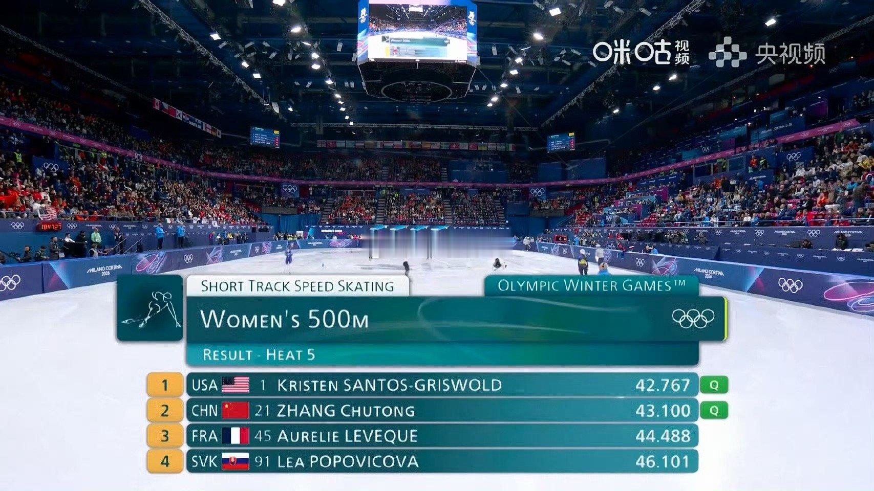 女子短道速滑500米预赛第二,足够出色
