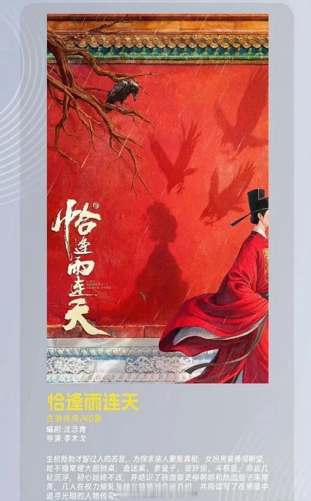 🍉《恰逢雨连天》丁禹兮,卢昱晓重点刻画女主女扮男装的朝堂权谋剧,对卢昱晓来说是不错的饼,对丁禹兮就见仁见智啦