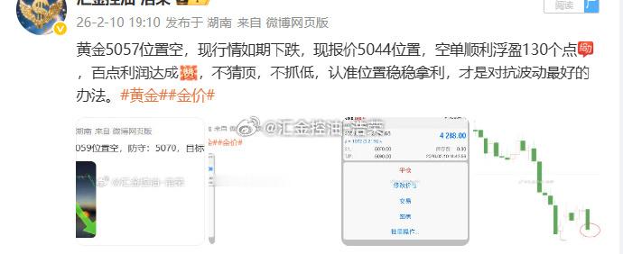 黄金5057位置空,现行情下跌至5020位置,空单止盈370个点,三百点收益达成,市场波动是常态,心态和策略同等重要,得敬畏市场,也得相信自己的判断黄金金价