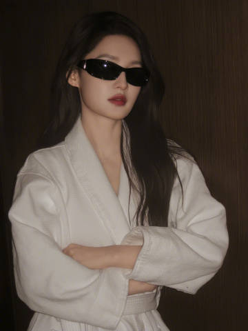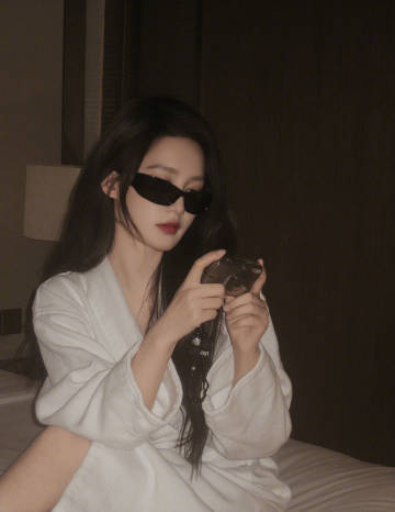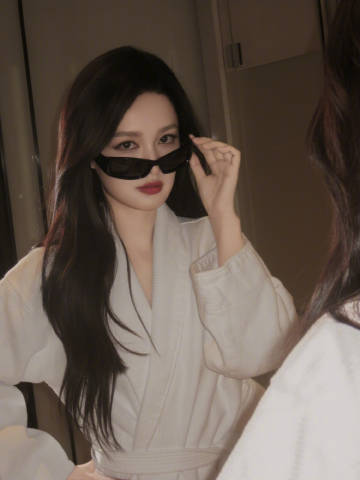 李沁今日营业照,穿着浴袍戴墨镜,手里拿着红酒杯,好酷的沁