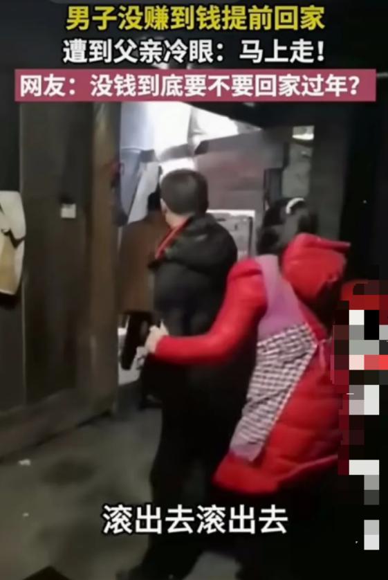 心痛!男子没赚到钱提前回家,父亲看他不顺眼,冲他怒吼:“滚出去,马上走,我不想看到你!”男子想着马上就要过年了,不愿与父亲计较,谁知,父亲却不依不饶,甚至还走过来把他往门外推,男子心痛万分,不禁感叹:原来没挣到钱,连回家过年的资格都没有啊! 这个小伙子,今年在外过得格外不容易,年初的时候他还在工地的活动板房前暗暗发誓,这一年一定要好好努力,挣大,给家里添点大件,让父母在村里能抬得起头,可现实却给了他重重一击,这一年工地工期拖拖拉拉,工资也总是被各种理由拖欠,有时候辛辛苦苦干一个月,到手的钱根本不够开销。 再加上高强度的加班让他身体扛不住,中间还病了一场,看病又花了不少钱,一来二去,到了年底,他手里的积蓄薄得像一张纸,勉强够买一张回家的车票,连给家人买像样年货的钱都没有。 他提前几天就踏上了回家的路,心里既忐忑又期待,忐忑的是自己没赚到钱,怕父母失望,期待的是不管过得好不好,能回到家吃到妈妈做的饭,就觉得心里踏实。 快到家门口的时候,他还在村口徘徊了十几分钟,反复整理自己并不光鲜的衣角,不是为了好看,而是想把这一年的狼狈和亏欠,都藏在衣服里,尽量不让父母看出来。 鼓起勇气推开门,他看到父亲正在院子里收拾农具,看到他回来的那一刻,父亲的眼神明显亮了一下,看得出来也是盼着他回家的,可这份光亮仅仅持续了几秒,当父亲的目光扫过他手里简单的行囊,还有那袋廉价的糖果饼干,那是他攒了好久的钱,勉强买的一点年货,父亲的脸色瞬间沉了下来,刚才的喜悦消失得无影无踪,取而代之的是一脸的不耐烦和失望。 其实小伙子心里清楚,父亲是觉得他没赚到钱,丢了家里的人,在村里这样的熟人圈子里,谁家孩子在外挣了多少钱、买了什么车,都是大人们议论的话题,也是父亲在邻里面前挺直腰杆的底气,而他这一年两手空空回来,无疑让父亲觉得在村里抬不起头,心里的火气一下子就上来了。 没过多久父亲的火气就忍不住爆发了,越说越气最后直接对着他怒吼起来,让他滚出去,还说不想看到他,小伙子心里又酸又痛,他知道自己没本事,没赚到钱对不起父母的期盼,想着马上就要过年了,一家人本该和和气气的,就不想和父亲计较,只能低着头,默默忍受着父亲的指责,心里盼着父亲能消消气。 可他没想到自己的退让,反而让父亲更加不依不饶,父亲见他不说话,火气更盛直接放下手里的农具,一步步走到他面前,伸手就把他往门外推。 母亲在一旁看着,急得直掉眼泪,一边拉着父亲,一边劝着,可父亲正在气头上,力气又大,常年干农活的手粗糙而有力,母亲根本拦不住,只能眼睁睁看着丈夫把亲生儿子往门外推。 小伙子被父亲推得踉跄了几步,差点摔倒在地上,手里的编织袋也被重重摔在了门口的冻土上,激起一小团灰尘,里面的廉价糖果和饼干散落出来,像他此刻狼狈又破碎的心。 他看着父亲铁青的脸,感受着身上的寒意,还有心里的剧痛,再也忍不住了,满心的委屈和心酸涌上心头,不禁在心里感叹,原来没挣到钱,连回家过年的资格都没有啊。 其实这个小伙子并不是唯一一个这样的人,最近这几年很多在外打拼的年轻人都有这样的困扰,行业寒冬、裁员、欠薪,让他们的生存变得格外艰难,辛辛苦苦一年,到头来却两手空空,有调查显示,每三个在外打拼的年轻人里,就有一个因为没赚到钱、怕家人指责,选择不回家过年,也就是大家说的“躲年”。 他们当中,有人像这个河南小伙子一样,鼓起勇气回家,却遭遇家人的指责和驱赶,有人干脆选择留在出租屋里,过年的时候只能通过视频通话和家人“云团圆”,隔着屏幕避开那些关于工资、房车的尖锐问题,也避开了面对面的尴尬和羞辱。 那个被父亲推出家门的小伙子,最后低着头消失在村口的寒风里那一刻,他失去的不仅仅是回家的资格,更是对“家”这个词最后的期待和幻想。 其实回家过年,看重的从来都不是赚了多少钱、带了多少年货,而是一家人的团圆和陪伴,愿每个在外打拼、两手空空的归人,都能被家人温柔以待,都能明白,平安归来,就已是圆满,不用因为没赚到钱,就失去回家的资格。