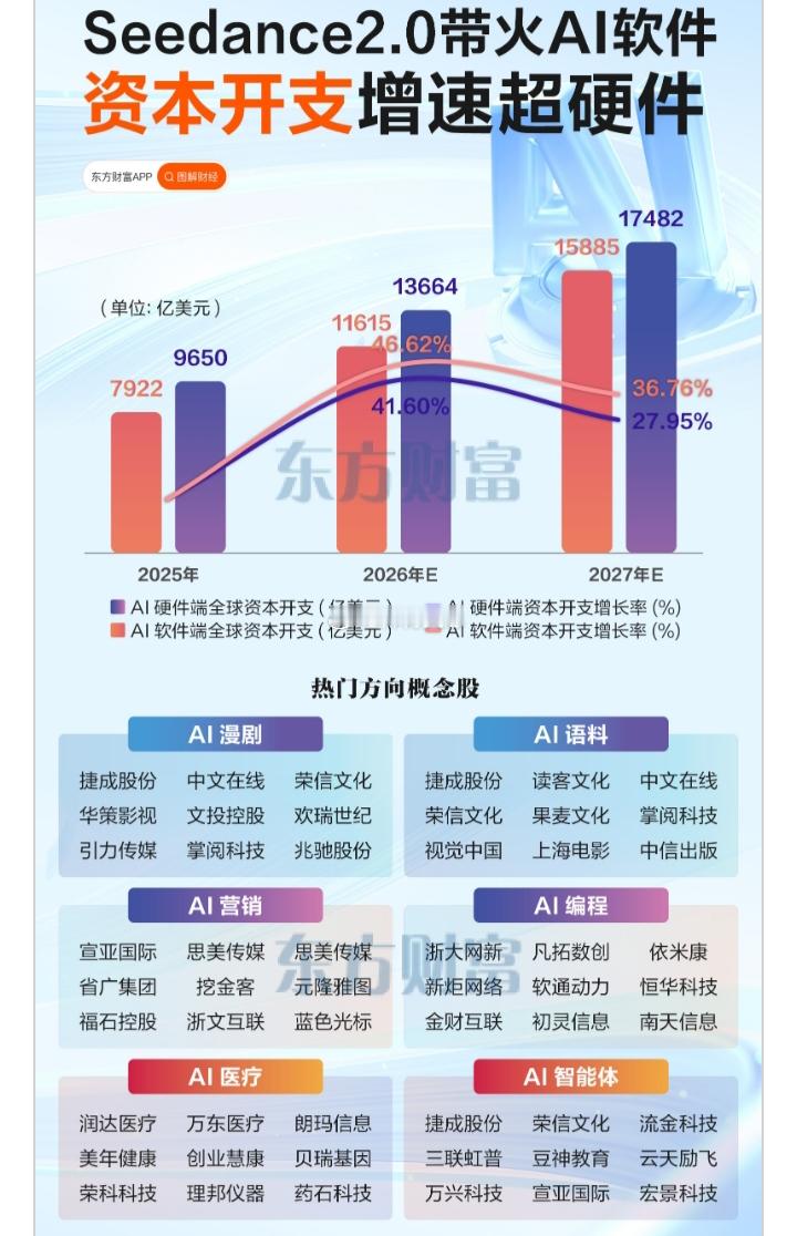 Seedance2.0带火AI软件(相关概念股票梳理):以下图表展示的股票不构成投资建议,据此操作风险自负。图表来自公开网络。