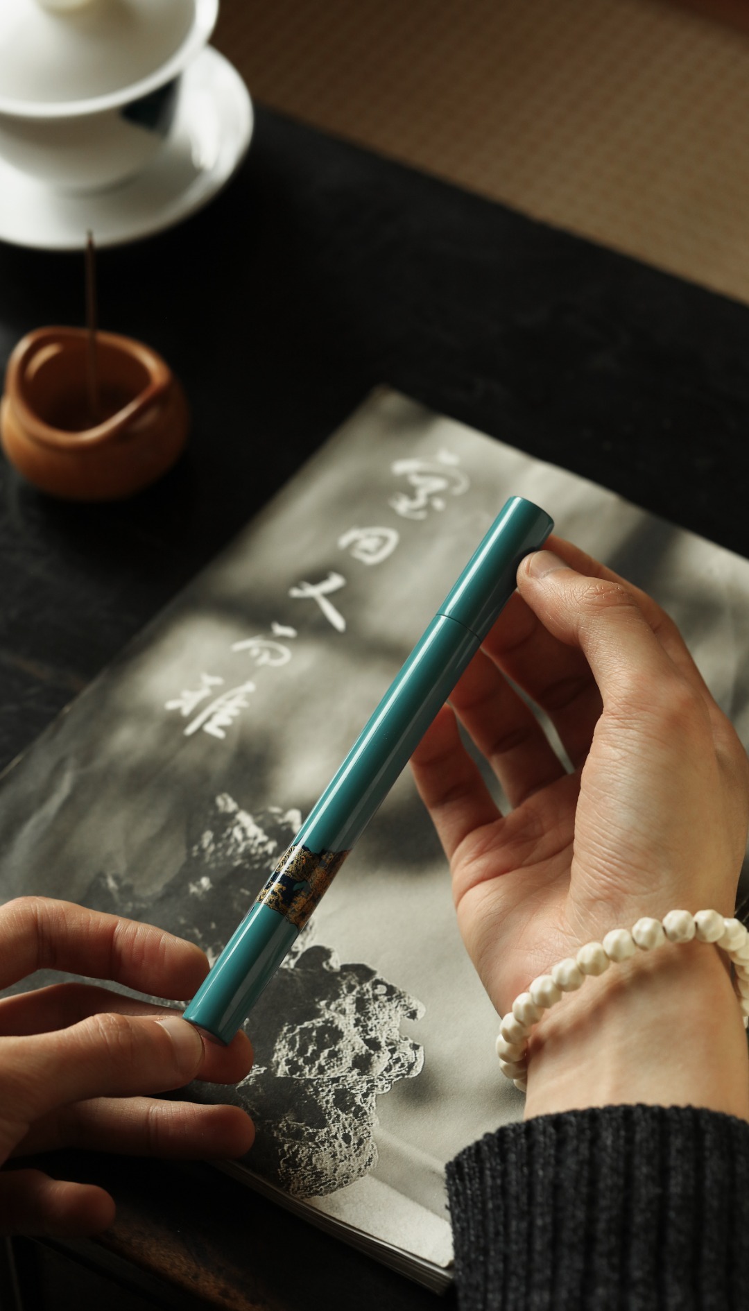 紫光檀为胎,髹漆其上,明艳夺目,清雅的颜色、温润的色泽,色华质坚历久弥新点一根香,把喧嚣留给世外,静谧舒心。