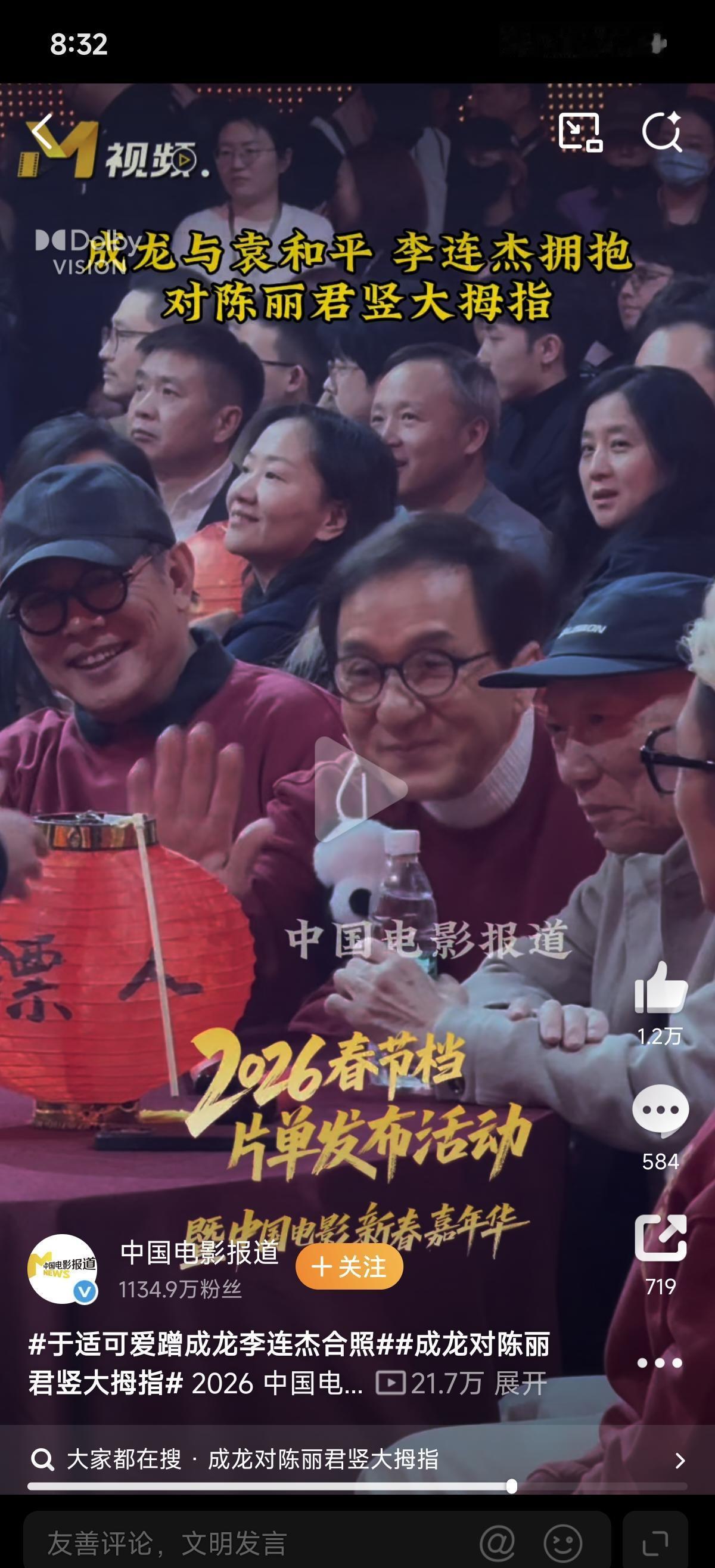 16年。 就一个拥抱。 吴京都坐不住了,直接掏手机,像个追星的小伙子。 镜头里,成龙70,李连杰61。两个加起来131岁的老头,笑得跟孩子似的。 《功夫之王》的记忆瞬间就炸了,那可是2008年。 一个时代,就这么浓缩在吴京那个有点抖的手机画面里。 旁边于适那小子,探个头,想挤进历史,又有点不好意思。 这哪是蹭镜头,这是朝圣。 有些人打了一辈子,不是为了分胜负,而是为了告诉后来人,路是怎么闯出来的。 大哥还是那个大哥,会给后辈陈丽君竖大拇指。 宗师也还是那个宗师,脸上刻着风霜,眼神里藏着江湖。 我们怀念的,不是那两张脸,而是那个拳拳到肉,连汗水都带着血腥味的胶片时代。