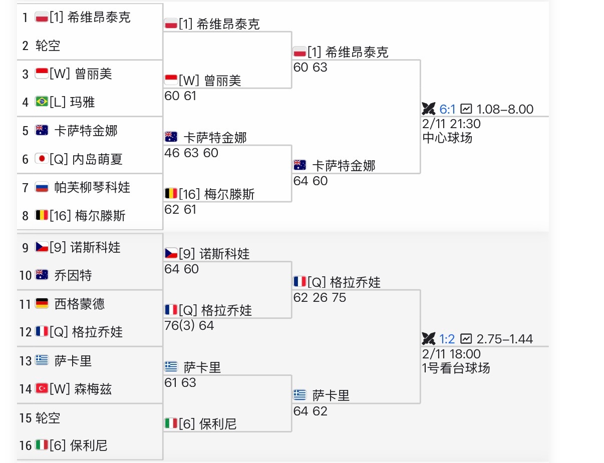 多哈这1/4区简直梦中情签,没有一个能打的……3个种子全部出局(梅尔滕斯、诺斯科娃、保利尼)