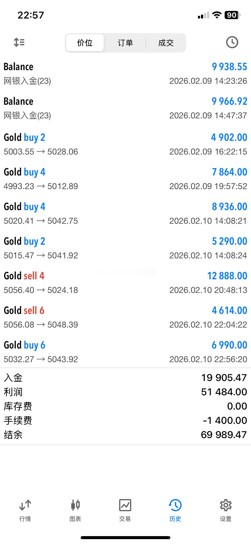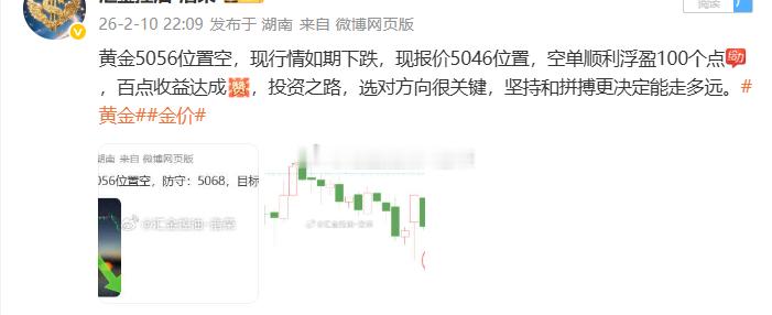 2026.2.10日操作4单,全胜!共收割1180个点,现在的努力,辛苦,压力,承受的一切,都是为了攒够能力和本钱,去做自己更喜欢的事,去为自己争取选择的权利。晚安!今天到此收工,晚安。黄金 金价