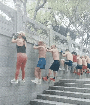 现在老人们健身方法五花八门,各种各样的健身培训也是层出不穷,这又是啥功法,公园的围栏石基可得经受考验,大妈大爷们如果练起劲了每天都来,雷打不动呦!老人锻炼方法