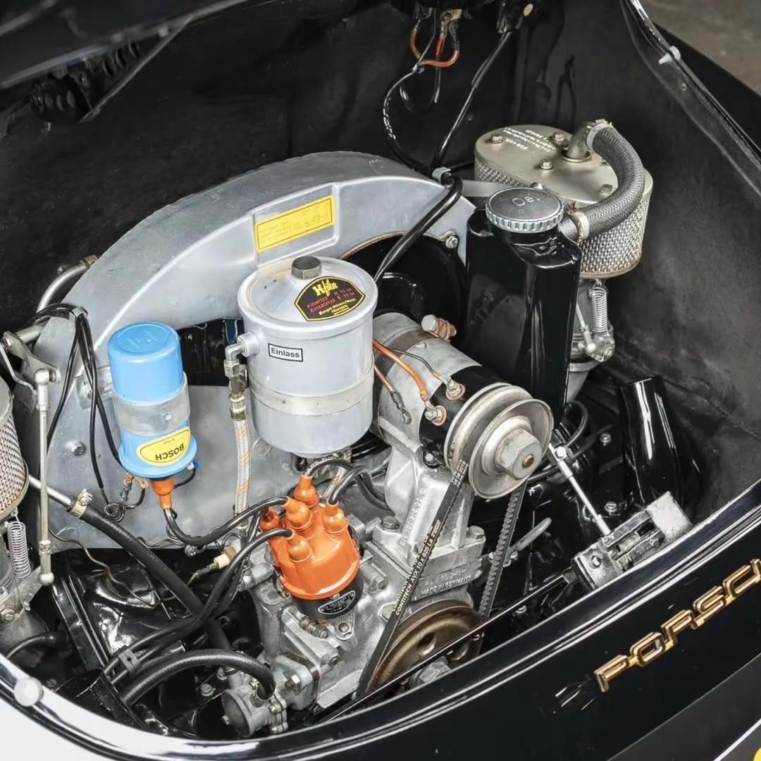 1964 年的 Porsche 356SC Coupe 是 356 系列在 C 代中的巅峰之作,于 1964 年以高性能“1600 SC”身份亮相,成为送别经典卤素时代的最后华章。 它搭载 1.6L(1582 cc)风冷水平对置四缸(Type 616/16),工厂标称动力约 95 马力,配四速手排与后置变速箱,制动系统为四轮盘式,性能在当时已可达约 190–200 km/h 的巡航能力。 1964 年正值汽车从纯粹性能走向“兼顾舒适”的转型期,356SC 把赛车级别的机械素质与温文尔雅的车身线条合二为一:发动机的轻声咆哮、简洁仪表与紧凑车舱,既是对 1950s 赛道记忆的致敬,也是对驾驶本身极简而高雅的礼赞。 保时捷356 复古车 汽车人共创计划 经典老车