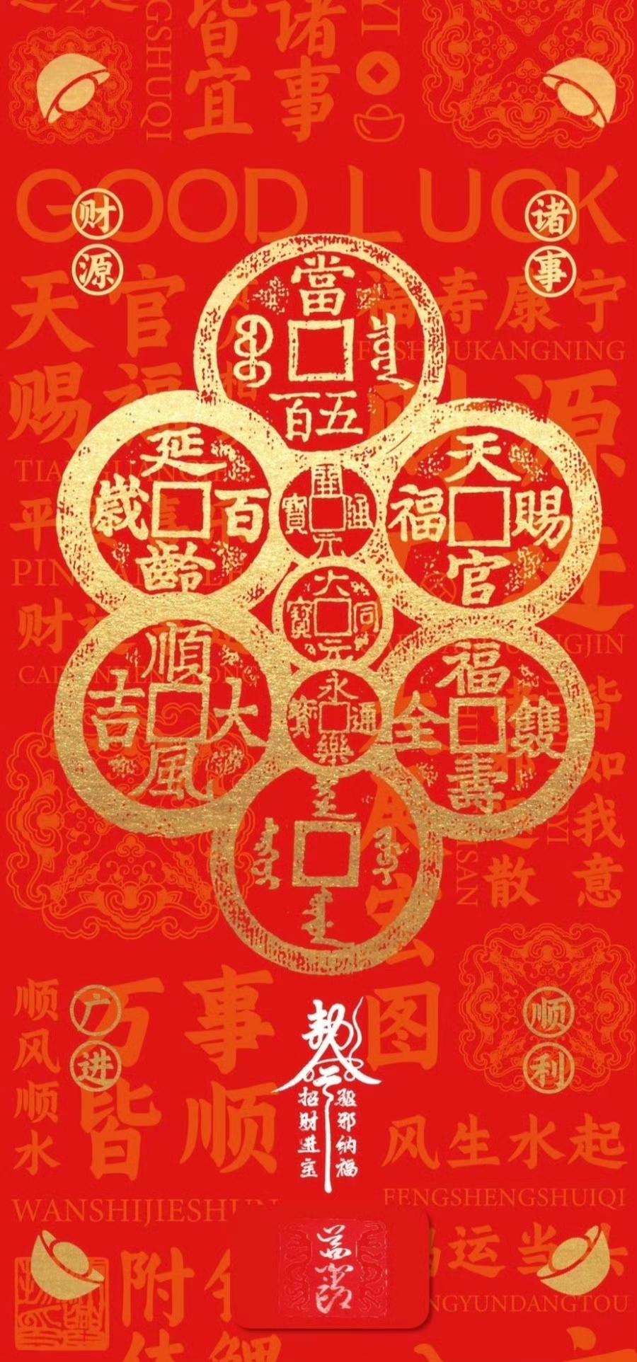 五福临门,好运连连,愿你新年吉祥,幸福安康!🎉🎊🎏 传统文化 绘画