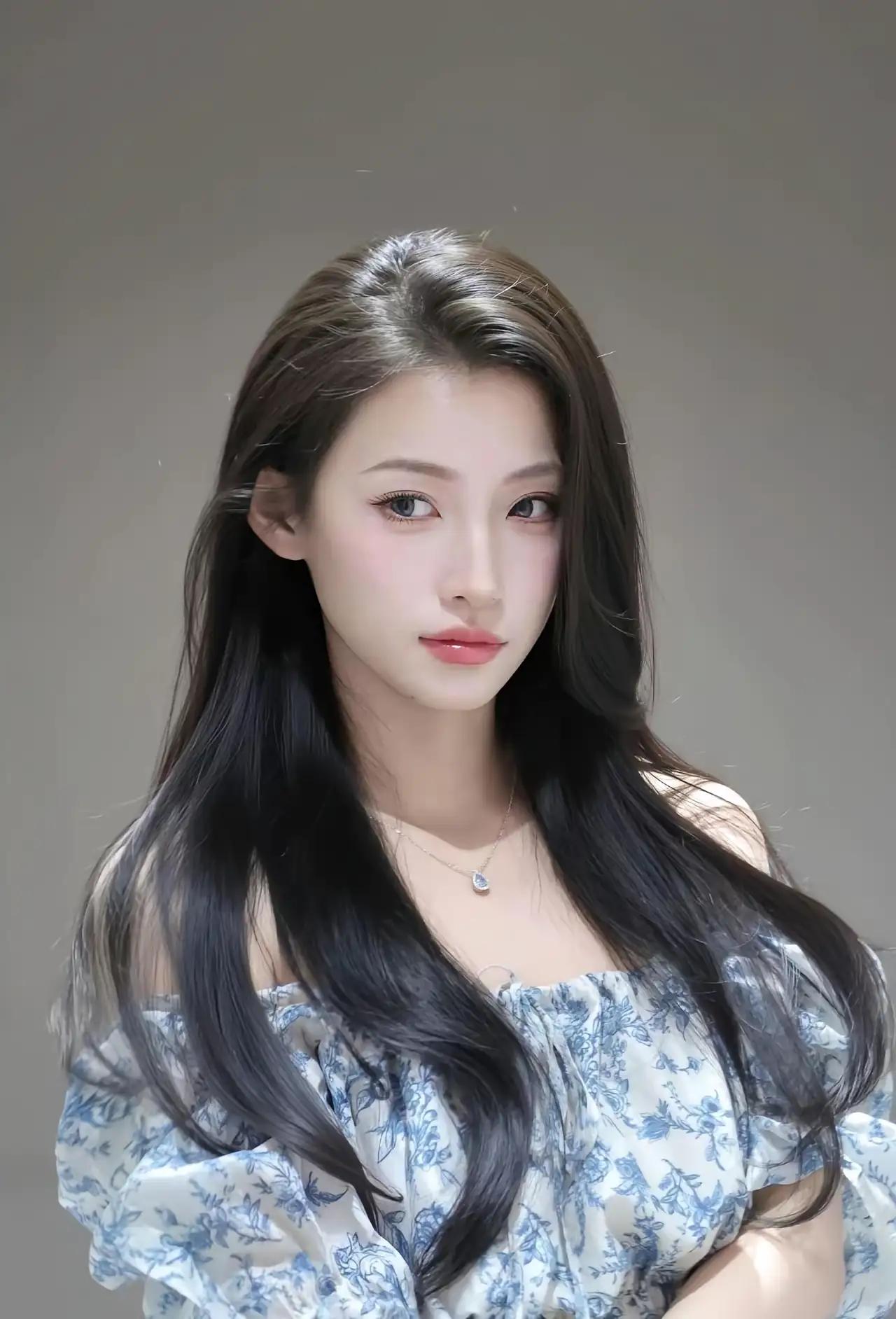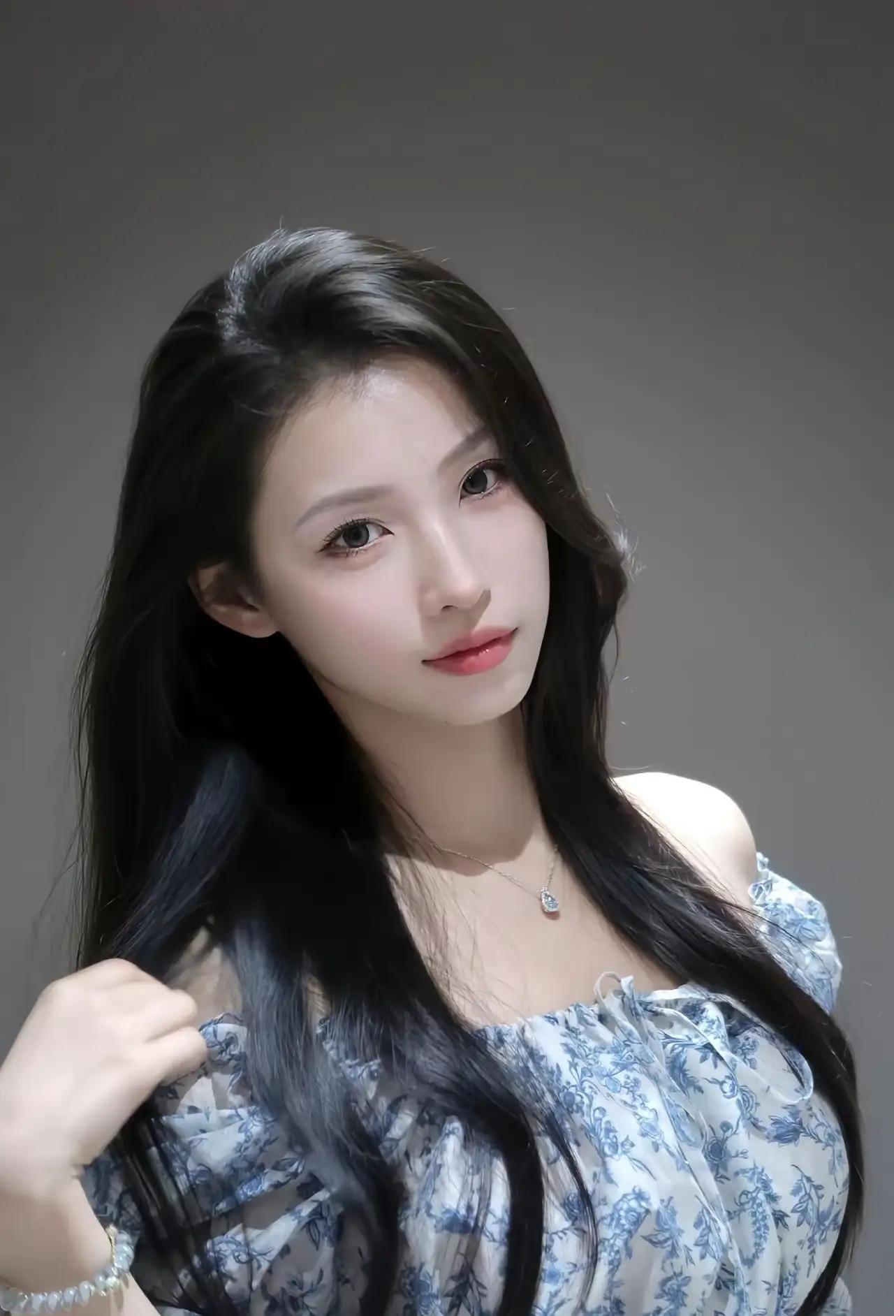 这组照片中,她身穿蓝白碎花露肩上衣,搭配简约项链与手链,长发自然垂落,整体造型清新温柔,充满夏日氛围。背景为纯色墙面,光线柔和,突出人物主体,营造出静谧优雅的视觉效果。 她的姿态轻盈自然,或轻抚发丝,或凝视镜头,眼神温柔而有神,展现出一种“邻家女孩”般的亲和力与“文艺少女”的恬静气质。这种风格非常适合日常写真、社交媒体头像或轻复古风摄影,既显清新脱俗,又不失时尚感。