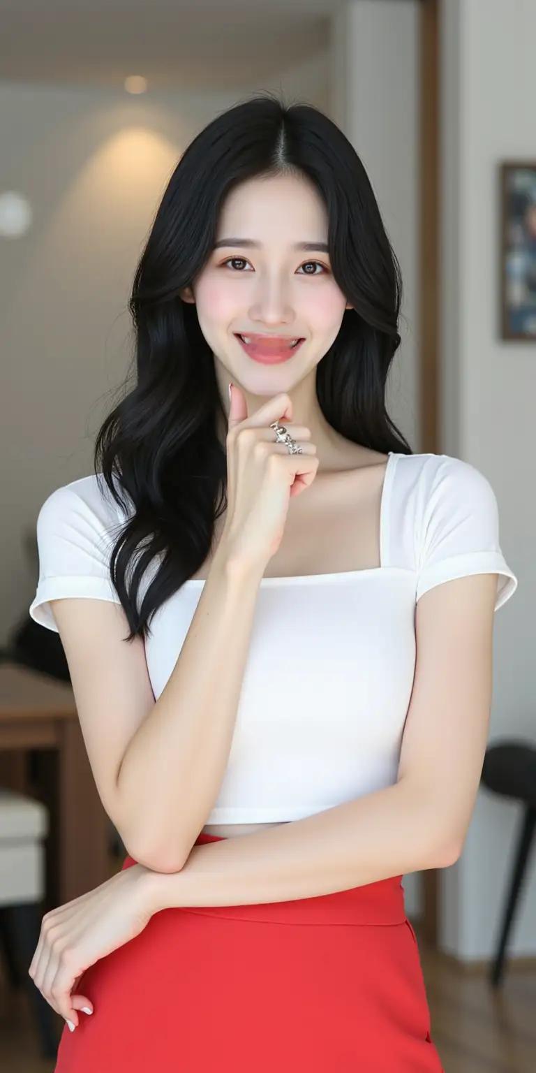 Velvet的队长兼官方center、门面、领舞、主rap、副唱担当。她以清新自然的风格和甜美 从画面来看,裴珠泫身着多套不同风格的服装,包括白色吊带裙、泡泡袖连衣裙、红格短裙、紧身针织套装、红色毛衣、露肩上衣等,整体造型温柔雅致,充满夏日气息。她的发型多为长卷发或低马尾,搭配精致的耳饰和项链,细节处尽显精致。 她通过不同的手势与表情——如微笑、比心、托腮、轻触脸颊——展现出俏皮、温柔、沉思等多重情绪,营造出一种“邻家女孩”的亲切感。背景多为室内环境,如窗边、厨房、客厅等,光线柔和,进一步强化了温馨私密的氛围。
