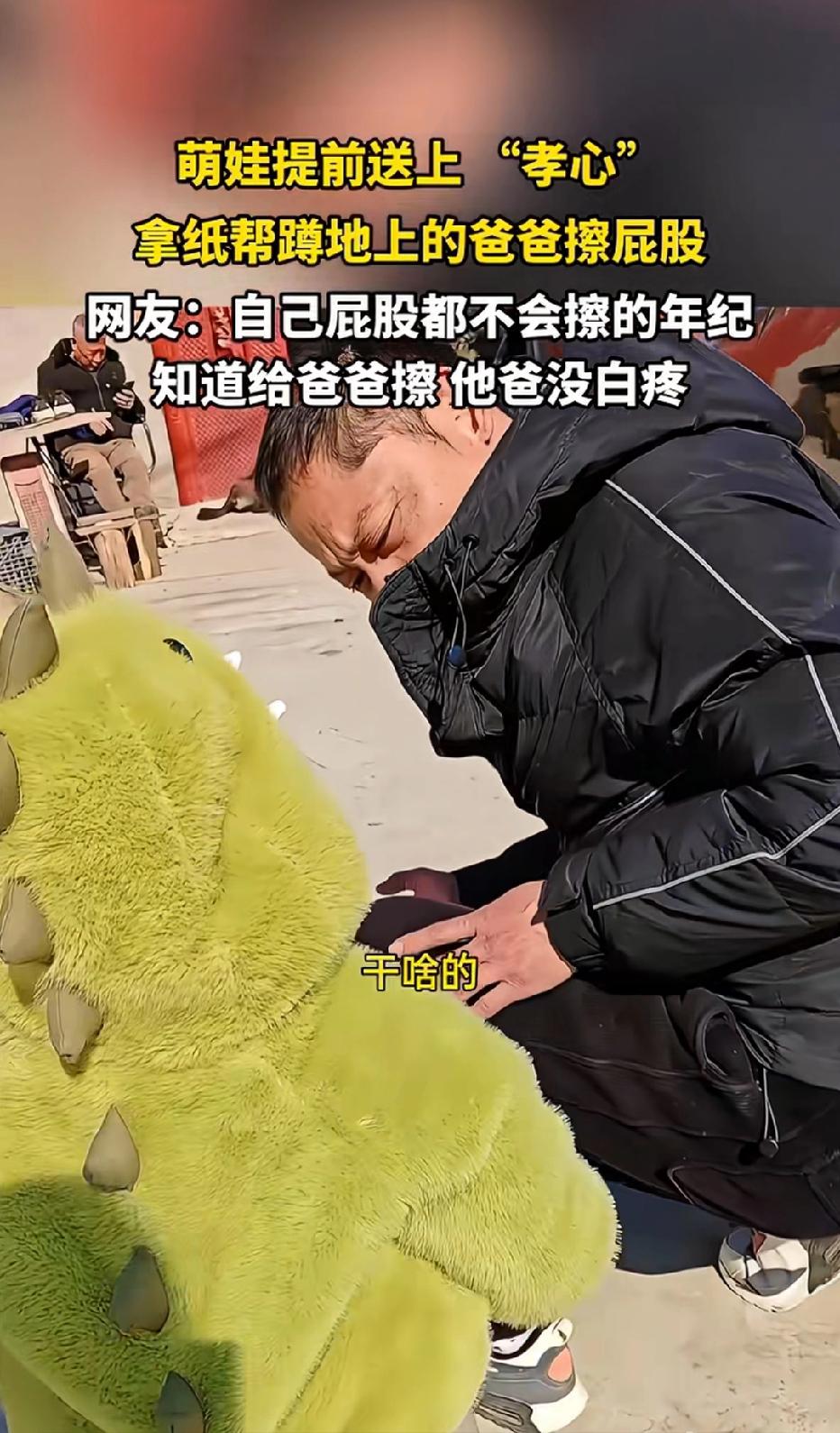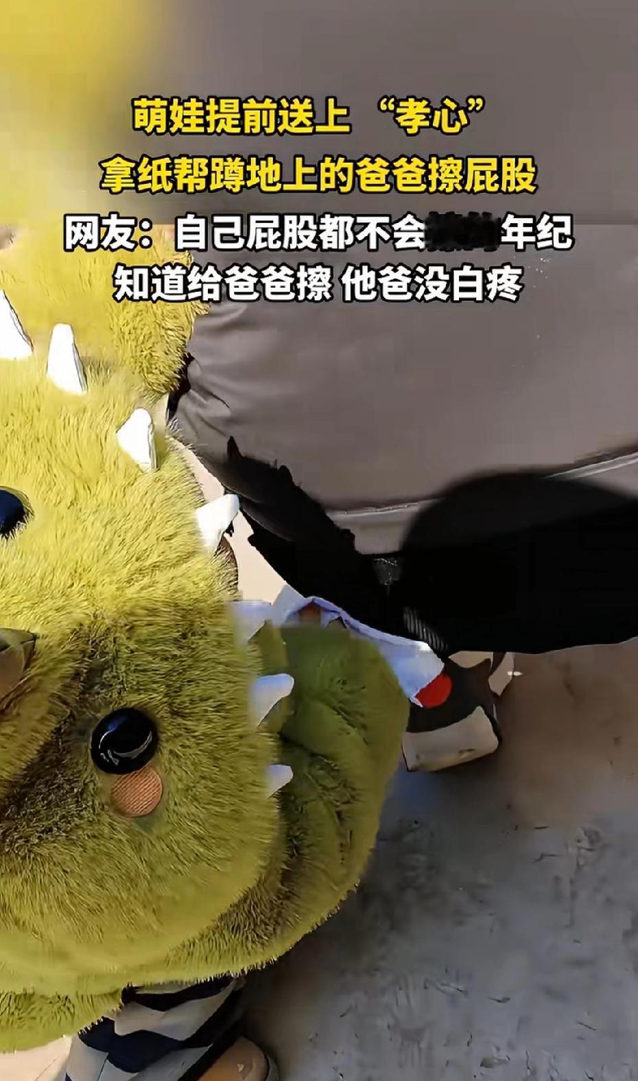 近日安徽合肥,一3岁萌娃看见爸爸蹲在地上,半天没起来!于是,他立马跑了过去,还做了这个动作! 他看见爸爸蹲在地上,以为他在上厕所,立马拿了张纸,就跑了过去,还帮他擦屁股,他爸爸发现后,顿时懵了,你干啥子?萌娃:屎!擦屁股!爸爸很惊讶,自己都还需要人给你擦屁股的年纪竟然还给我擦屁股来了!也是提前送上孝心了!