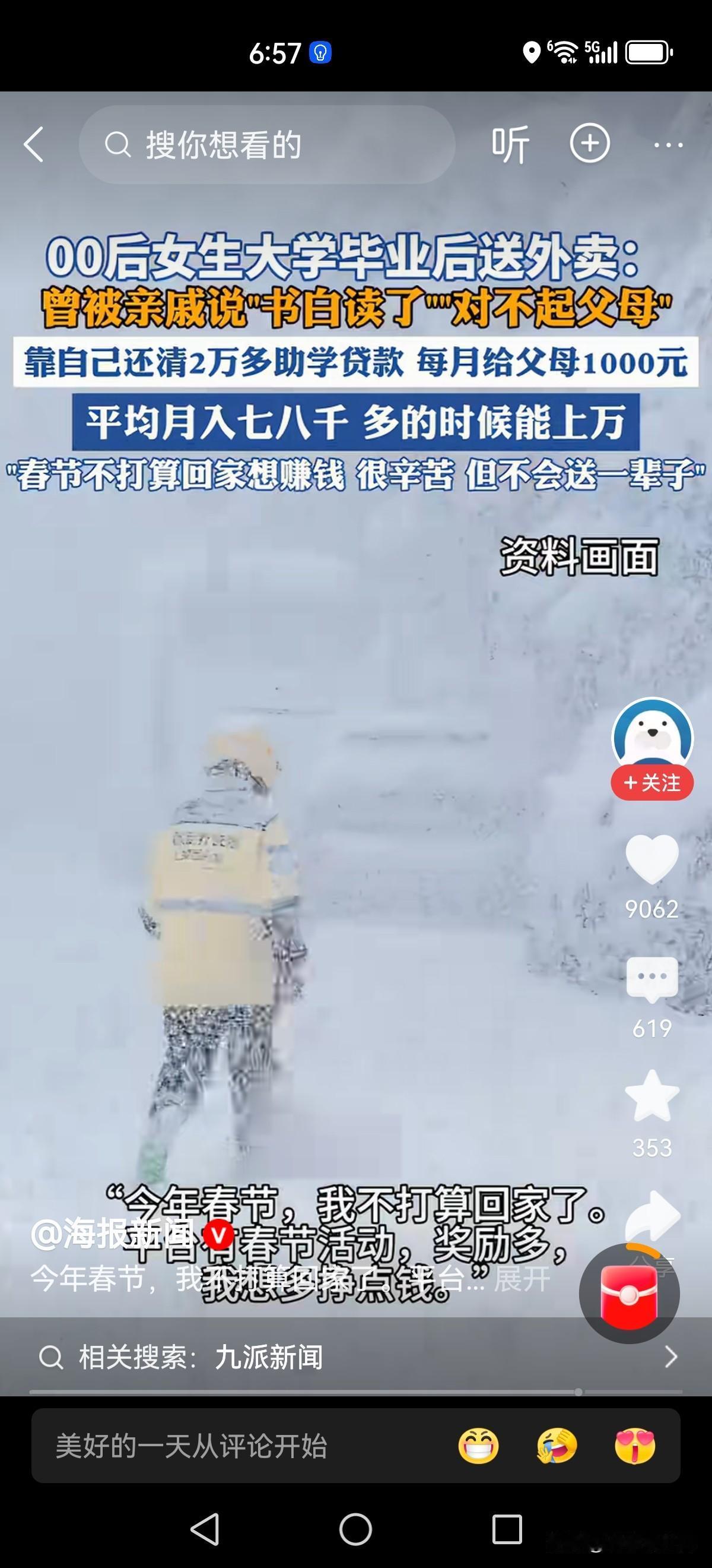 大学生毕业以后送外卖,这并不意味着读书无用。 虽然同样是送外卖,大学生可能干一阵子,干几年而已。他可以干外卖,也可以做其他的工作,只是暂时没有合适的而已。 而没读书的人送外卖,那是因为他只会跑外卖,不会干别的。 所以说,读书可以带来更多的选择和可能性。送外卖 外卖职业 送外卖经验 大学生干外卖 00后外卖骑手 送外卖大学生 送外卖大学
