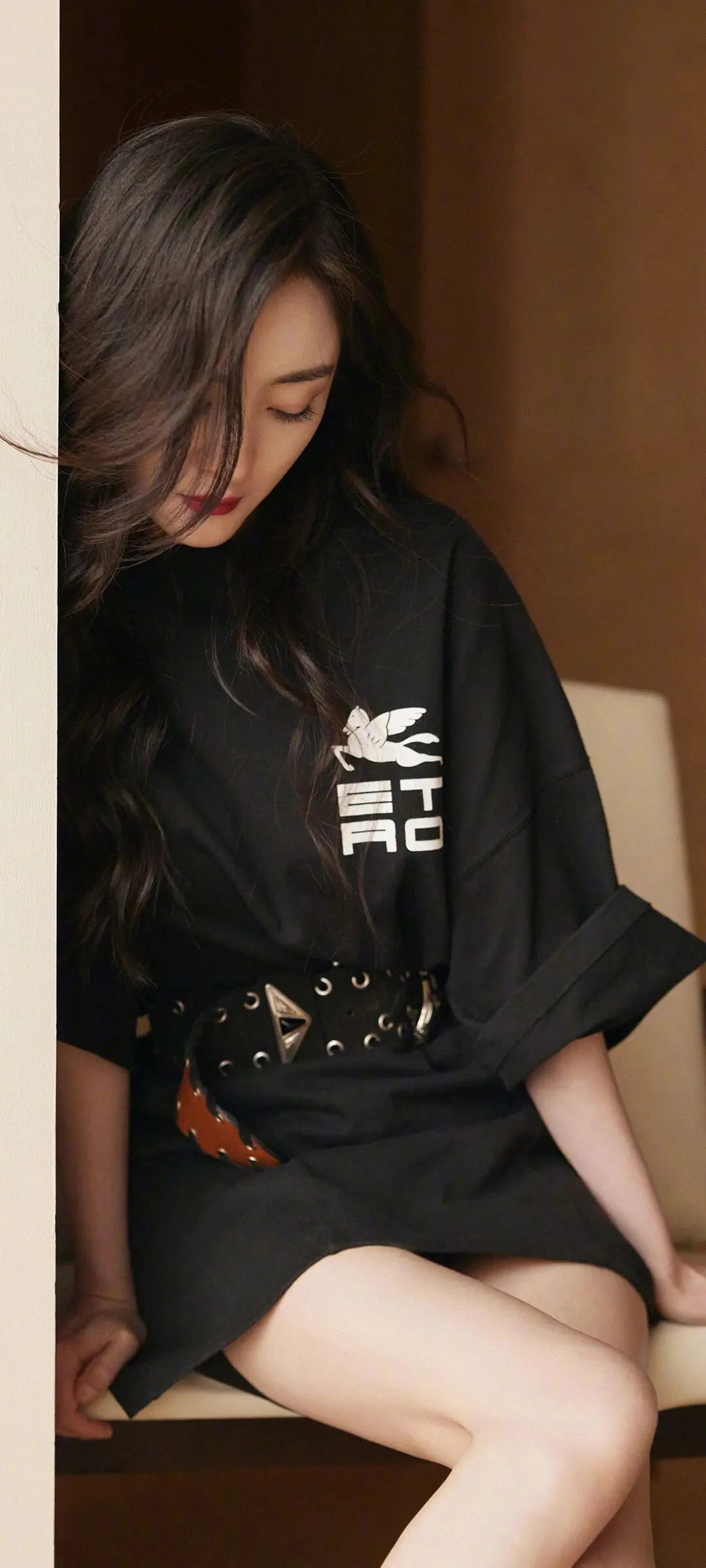 刘亦菲这条裤子也太养生了吧,连肚脐眼都好好护住,舒适又接地气~