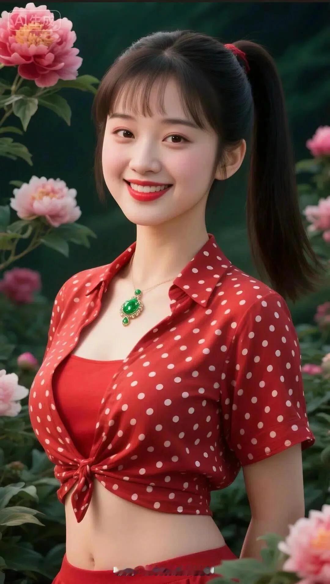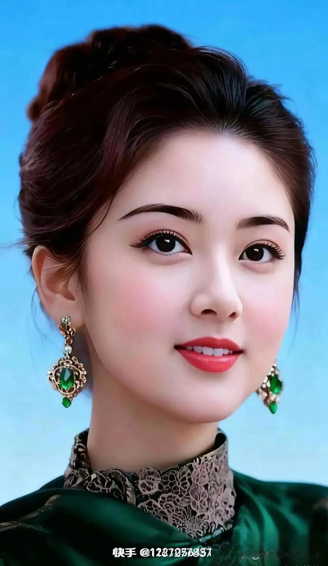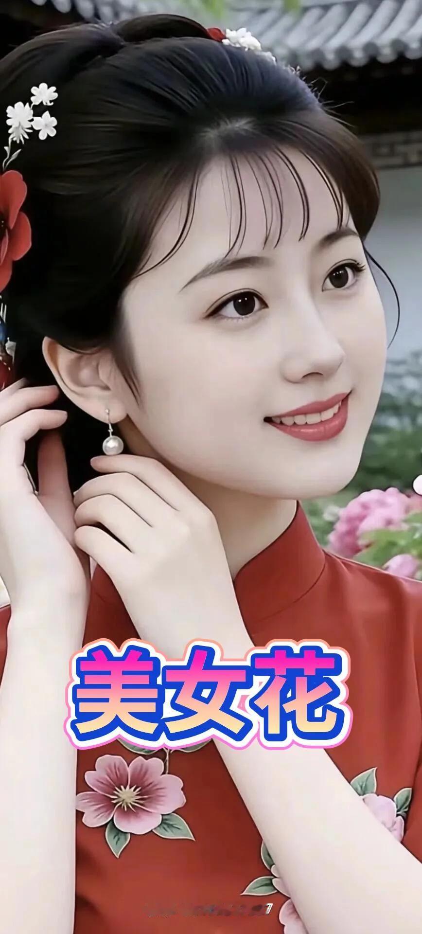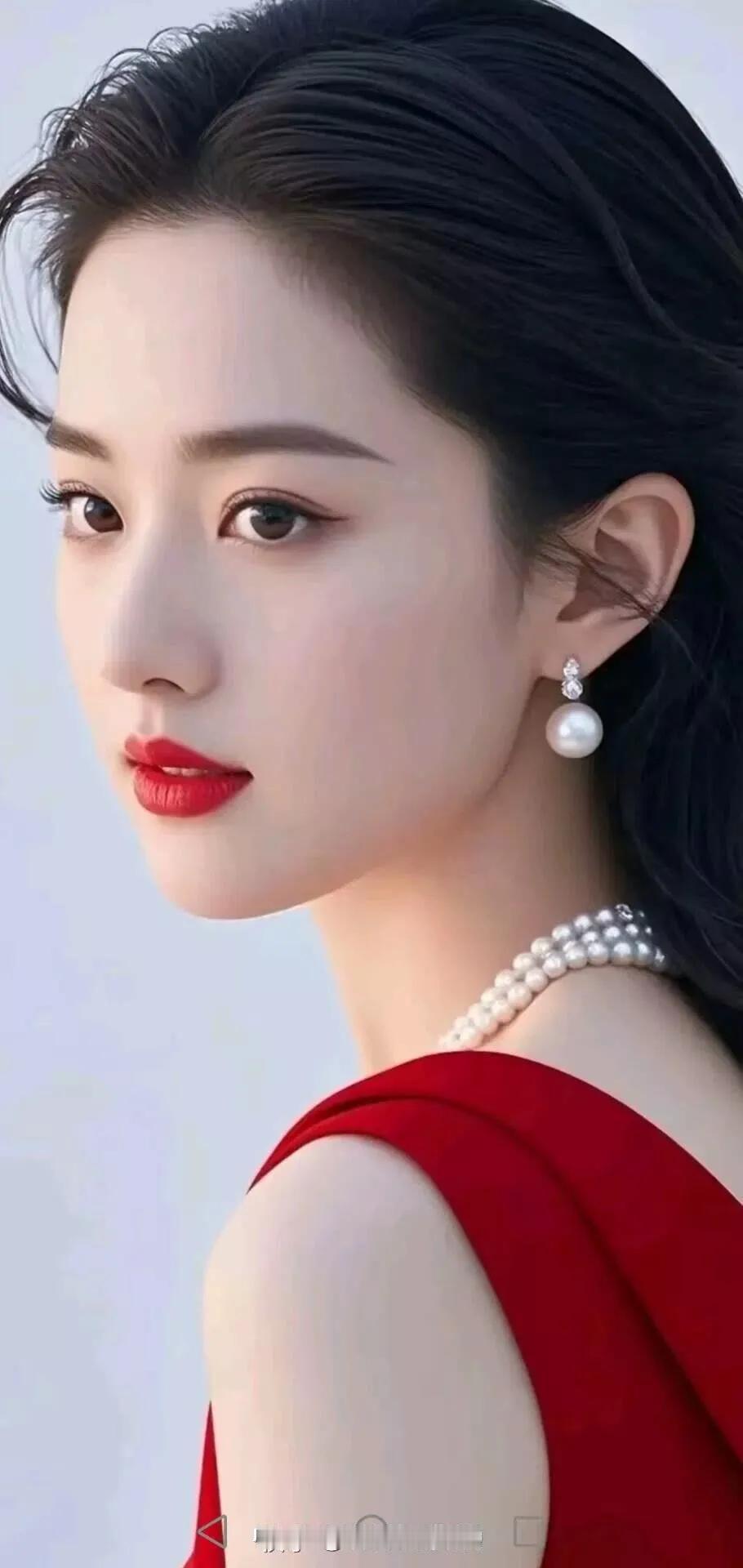 复古旗袍美人,红唇与珍珠耳环相映成趣,优雅动人。