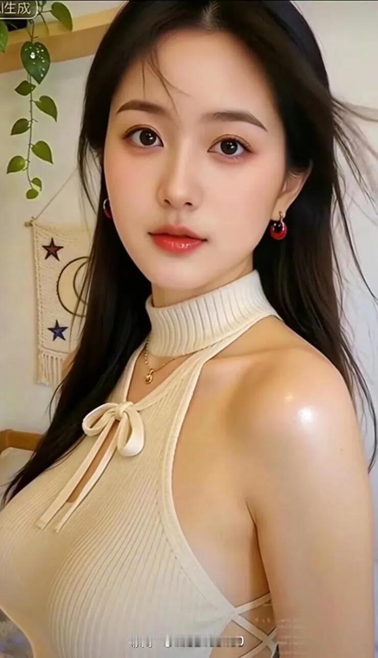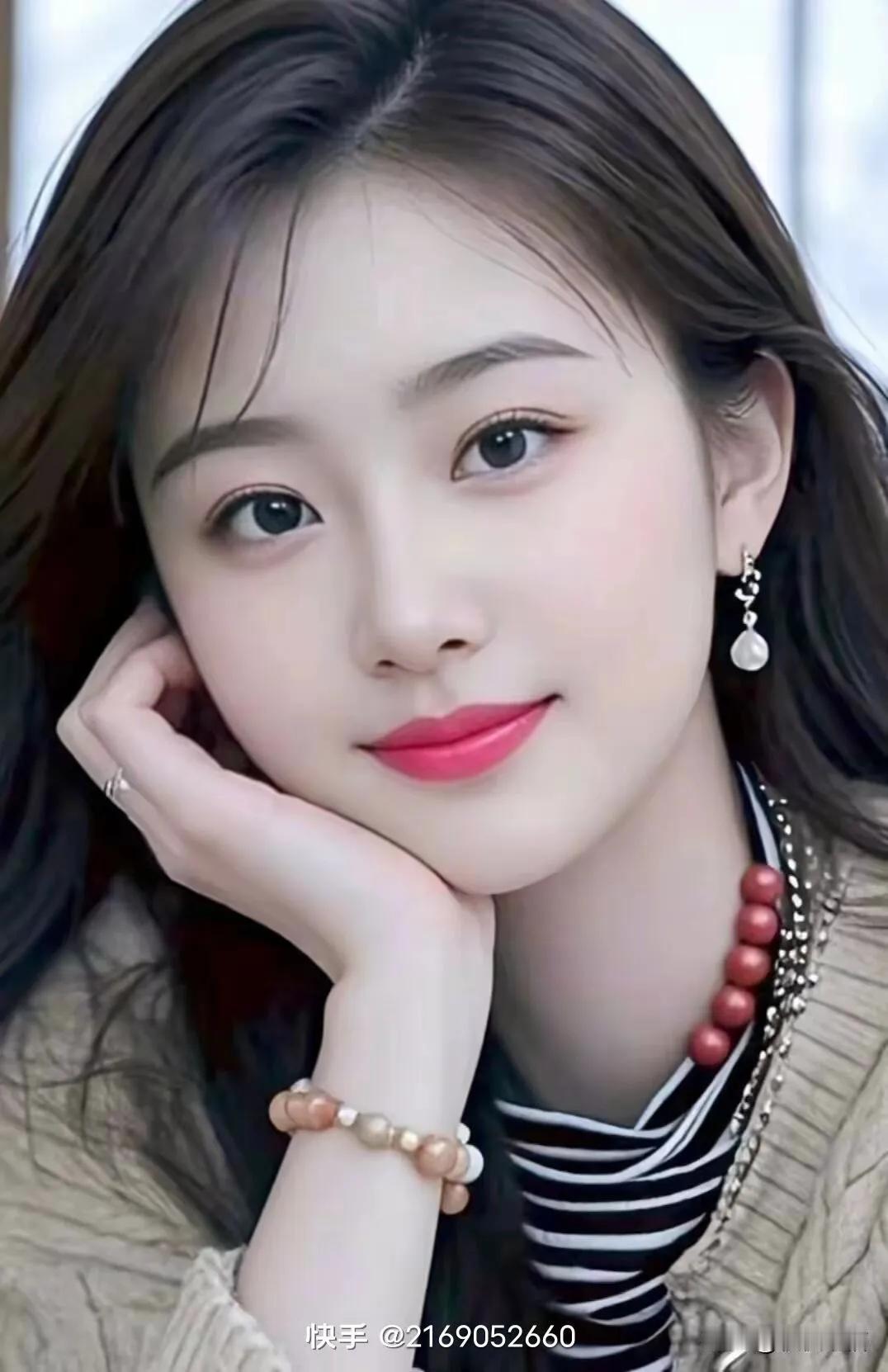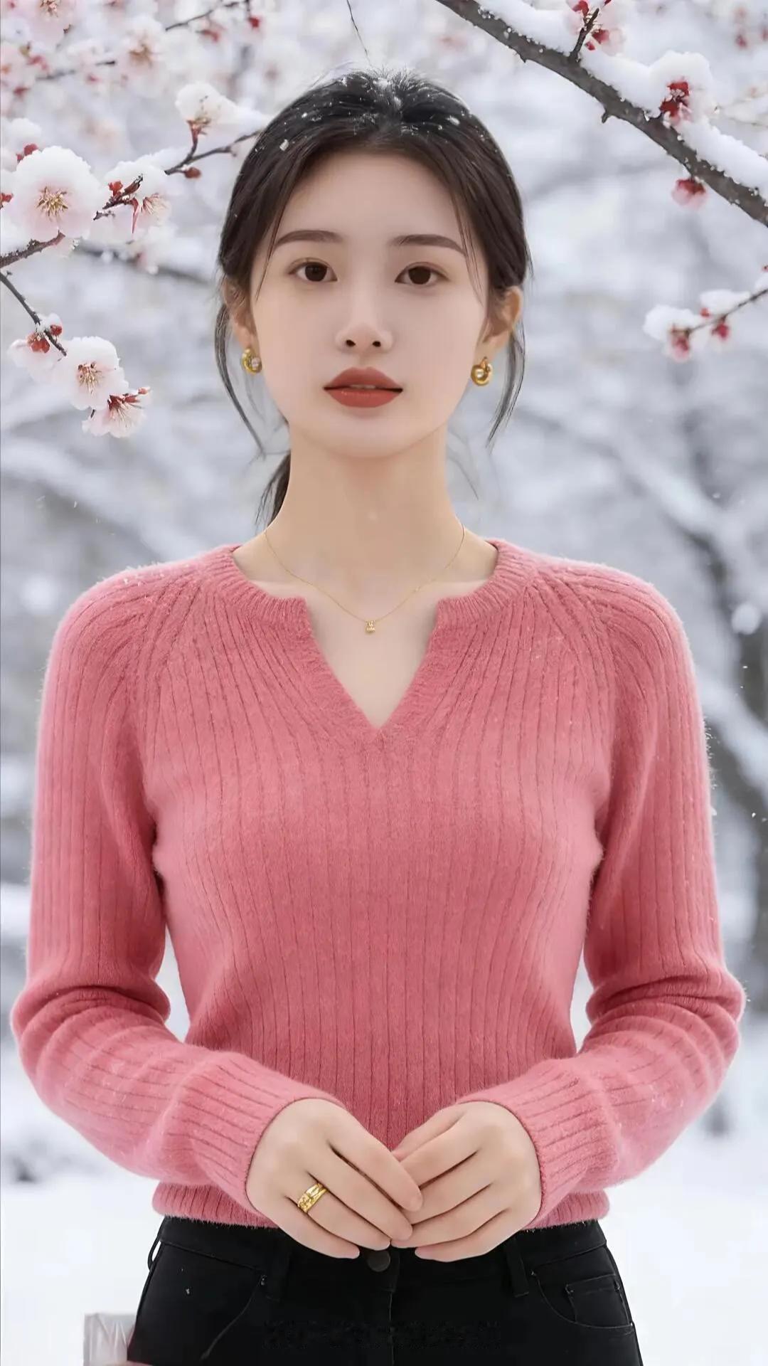 甜美粉毛衣少女,温柔微笑,元气满满!🌸💖