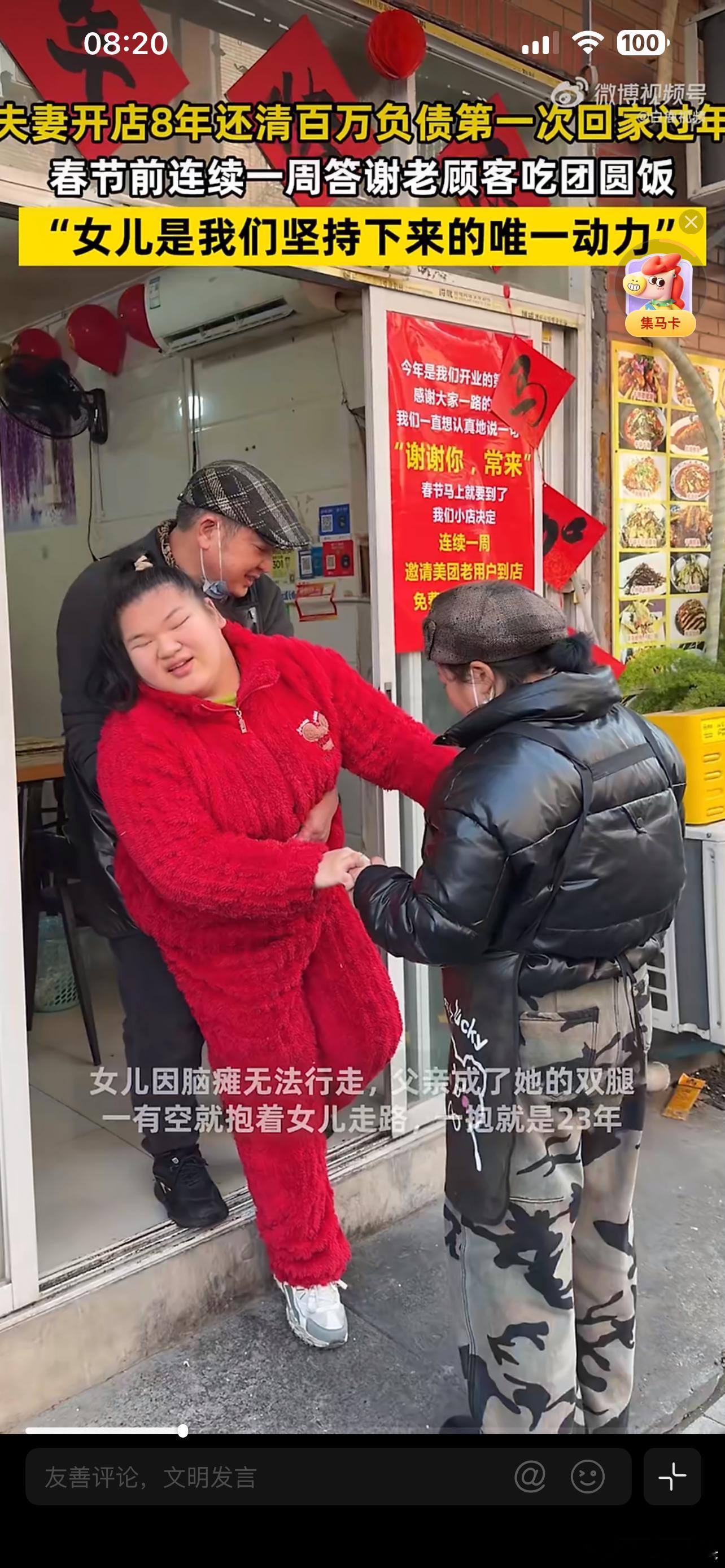 8年还清百万债务第一次回老家过年 不容易啊,辛辛苦苦8年才还清债务,老板懂得感恩请老客户吃饭答谢,为了脑瘫的女儿,父母真的是很强大的存在.! 父亲抱了23年的女儿站起来了