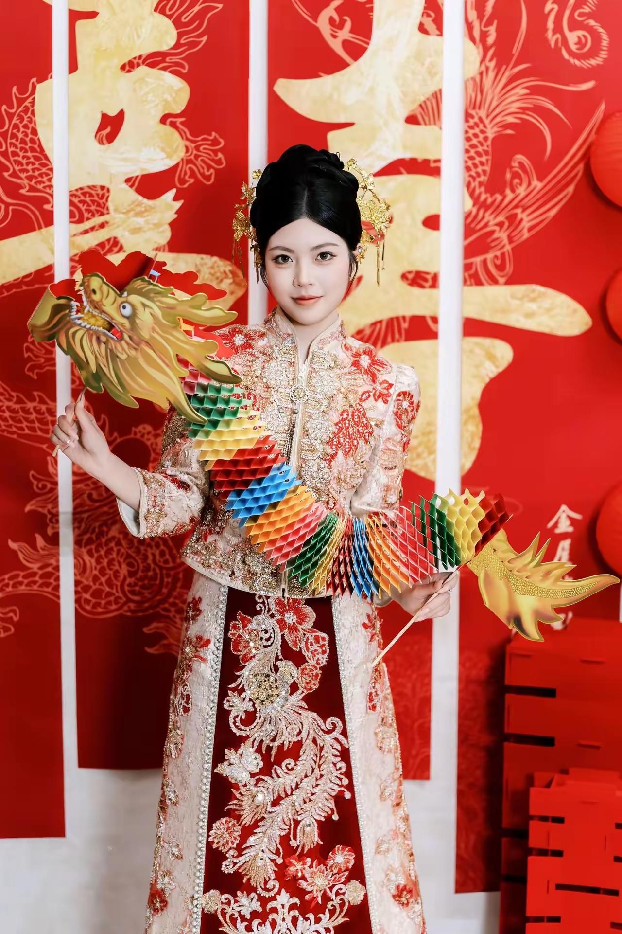 美女在鸟巢展示高定主持人晚礼服。晚礼服礼服长裙