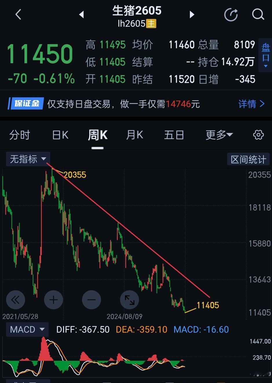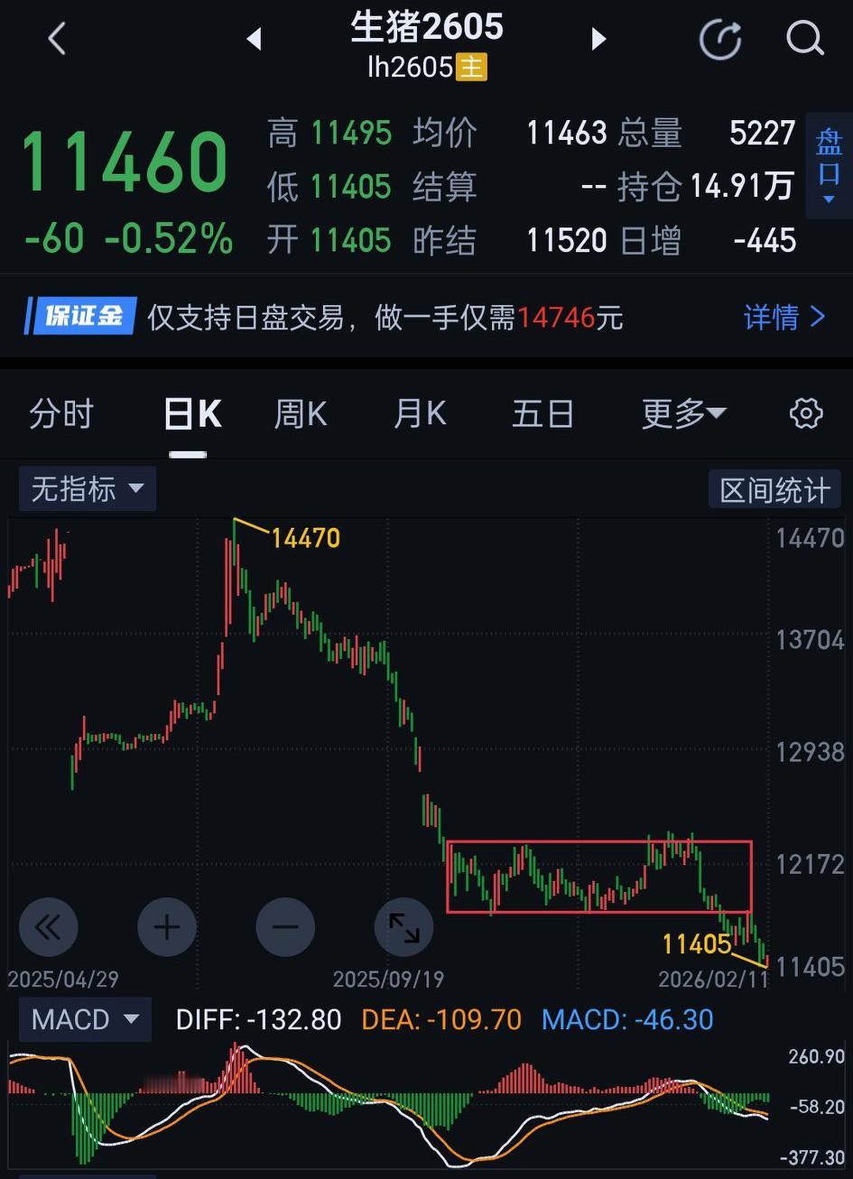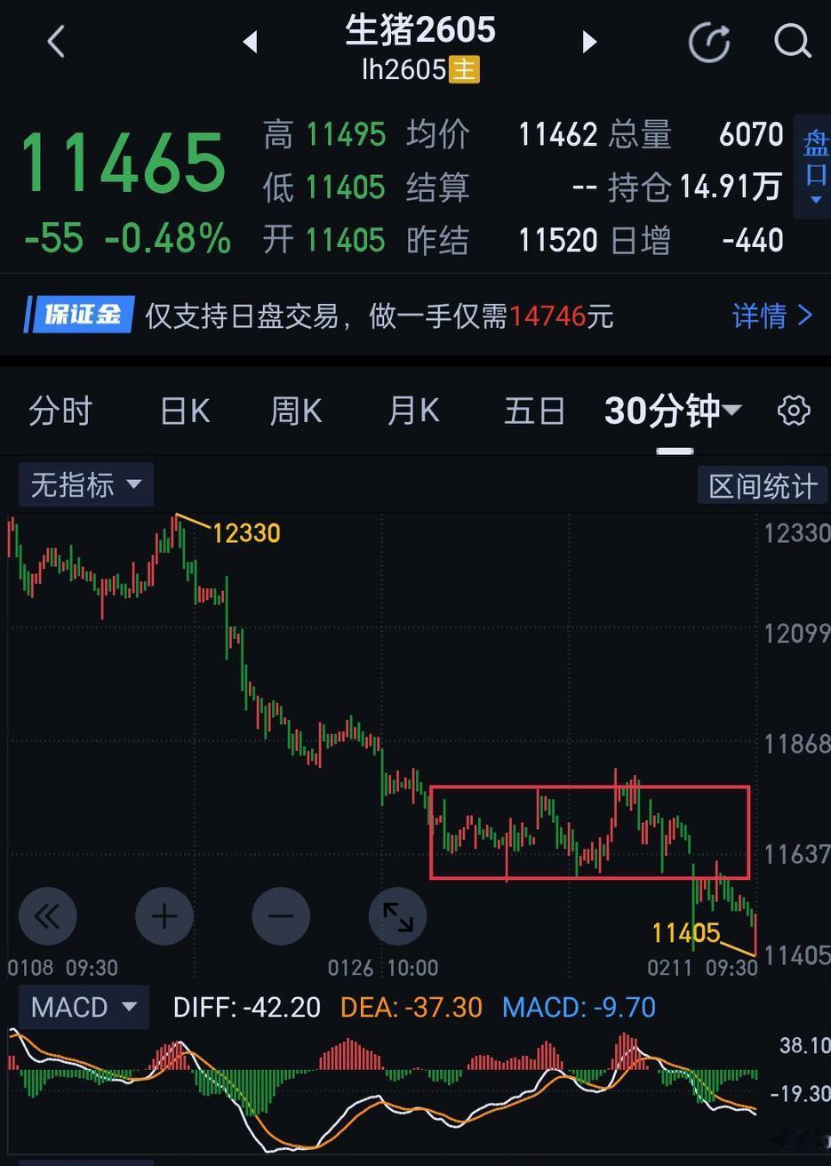 生猪2605走势结构用"缠论"区间套拆解。周线上仍处于左侧交易的结构。日线图上观察是否形成三十分钟中枢的盘整背驰。开始于12340的日线一笔下在三十分钟中图上也有一个五分钟中枢呈现。按目前走势结构,大周期上操作生猪商品期货的"空单"风险大于"多单"。如果想入手"多单"可等三十分钟图上呈现启稳结构再择机介入。后续将逐渐把生猪期货纳入观察范围。