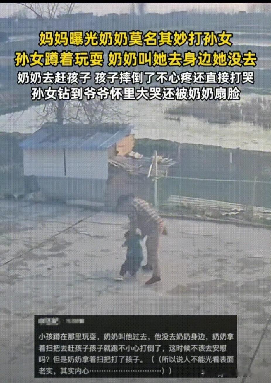 孙女在院子里跑来跑去,奶奶叫她不要乱跑,但孙女不听,还骂了奶奶一句,奶奶就拿起扫帚追着想打。 这事儿一出来,可真让人纠结。奶奶打孩子,有人觉得孩子不听话在先,打两下没啥大不了; 可也有人觉得奶奶下手狠,又是掐脸又是摁头。 咱说啊,教育孩子,打可不是个好办法。 虽说孩子骂人不对,但奶奶这么冲动,容易给孩子留下心理阴影。 而家长呢,也得跟老人多沟通,共同琢磨出好的教育法子。 大家觉得奶奶这做法到底过不过分?快来说说你们的看法。