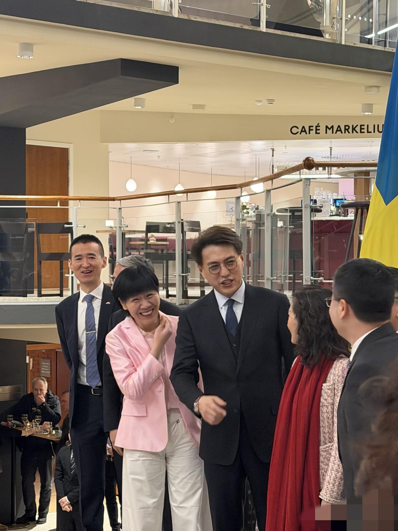 靳东率队赴瑞典斯德哥尔摩演出,合影时不敢居C位,主动让给老外! 2月10日是小年夜,靳东率领中国煤矿文工团的年轻演员远赴瑞典的斯德哥尔摩参加新春表演。 看了现场表演的画面,不得不佩服,现在的演员确实多才多艺,而且还很年轻,这些年轻人认真排练,认真表演,把中国的传统东方美韵很好地传递给了老外。 今年已经50岁的靳东,穿着西装打了领带,戴了一副眼镜,第一眼看像是大学的教授。 他到了瑞典肯定是备受追捧的,很多人站在他跟前帮他介绍当地的民俗,以及跟他热情交流。 中国煤矿文工团在小年夜的表演是非常精彩的,但最后大合影的时候,靳东不敢站C位,不敢居最中间,主动让位给老外了,老外是斯德哥尔摩有头有脸的人物。 此时的靳东还有点像老干部,站在台上很腼腆,不太敢高调,也不敢乱说话,最多笑一笑,一切尽在不言中。 靳东带领的中国煤矿文工团,这次在瑞典斯德哥尔摩给国人长脸了。 而靳东除了穿西装之外,还戴了一块手表,显得身份尊贵了,又像个大老板似的,更是中老年妇女的偶像,他跟前总是围绕着好几位中年女性,她们都愿意跟靳东交流。