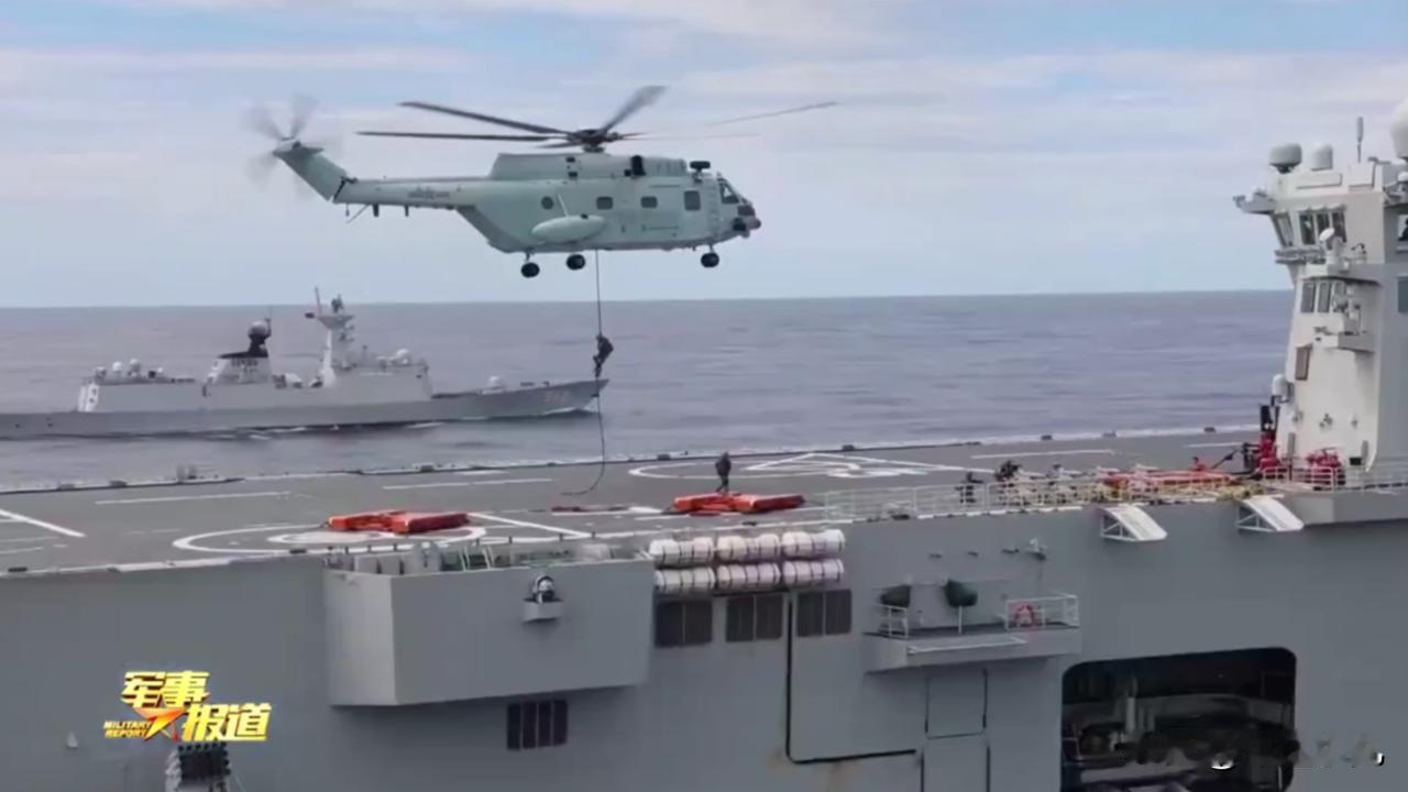 075,居然发射海红旗10防空导弹了?这画面,真的很少见…… 这画面,虽然之前也有公开过,但整体来说,还是很少见的,075,实战演练,直接发射海红旗10防空导弹,进行拦截来袭目标,这发射画面公开,海红旗10,拉着烟儿,就冲着目标飞去了! 而且,这一次,直接给出了两个视角的发射画面,看着还是很过瘾的,非常的霸气,画面中可以看到,海红旗10的弹体,还是很细的,整体射程不是很大,主要用于末端拦截防空,不过,也够用了! 另外,几张图,看着也很霸气了,在茫茫大海上,075破浪前行,6个起飞位全部停着舰载直升机,准备起飞,甲板工作人员,从画面上看,就是一个小点点,一下,就能衬托出,075的体型有多大了,整体非常的庞大! 大家可以看到吗?评论区说说!红旗10导弹