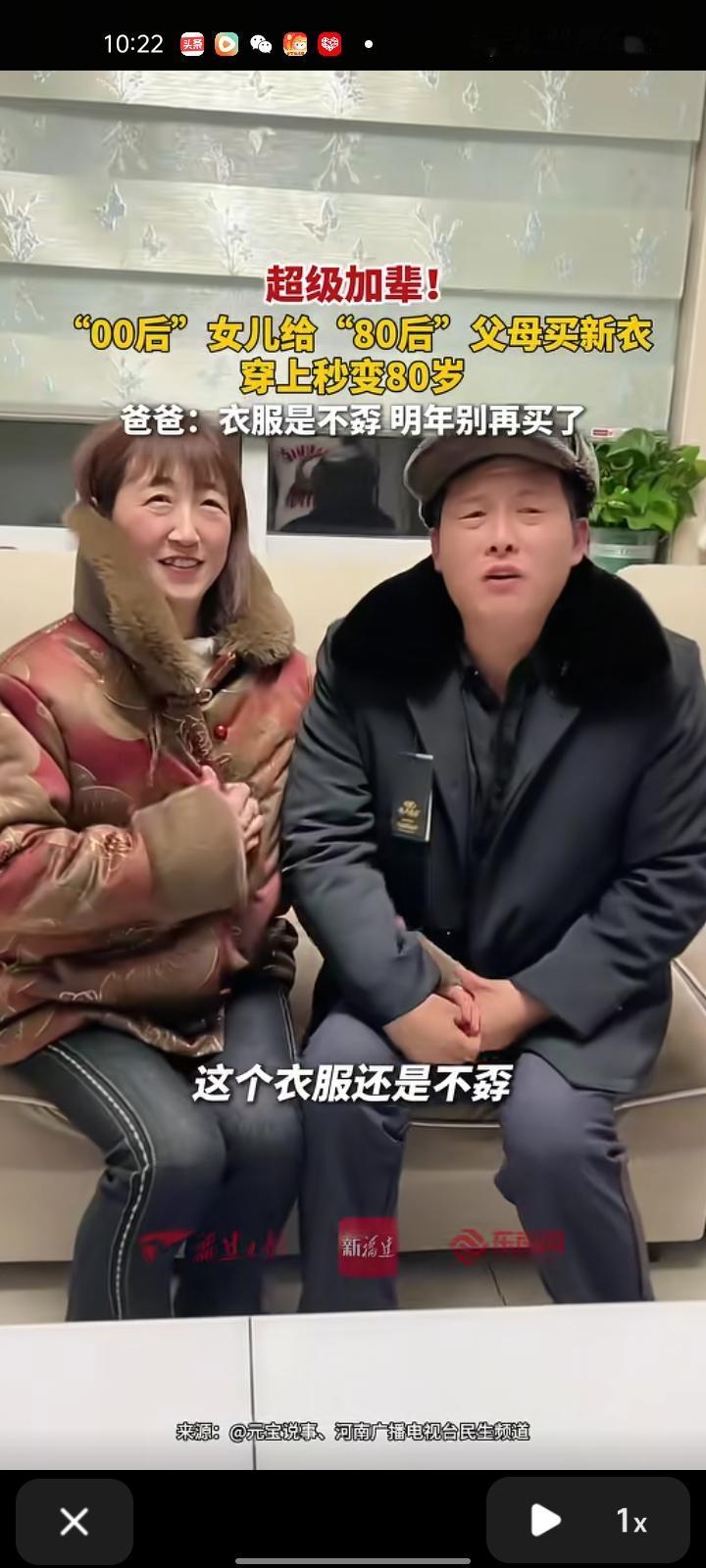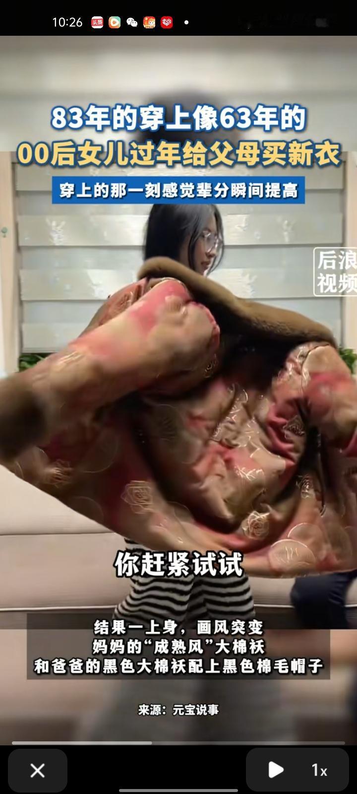 2月6日,山东泰安。00后女儿特意为80后父母准备新年衣服,穿上那一刻画风突变,妈妈的“成熟风”大棉袄和爸爸的黑色大棉袄配黑色棉毛帽子,穿着确实保暖,但气色一下沉稳不少,甚至妈妈感觉83年的穿着像63年的。父亲吐槽道:“这个衣服还是不孬,明年你别给俺买了。”