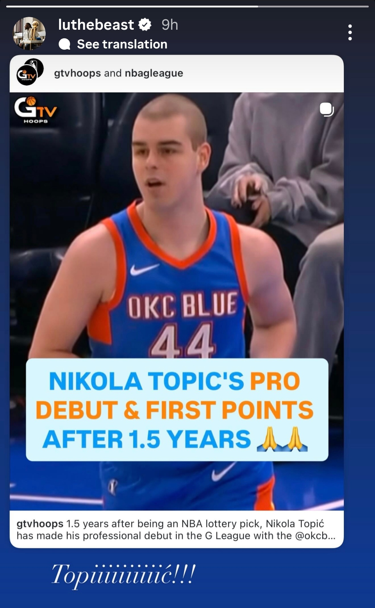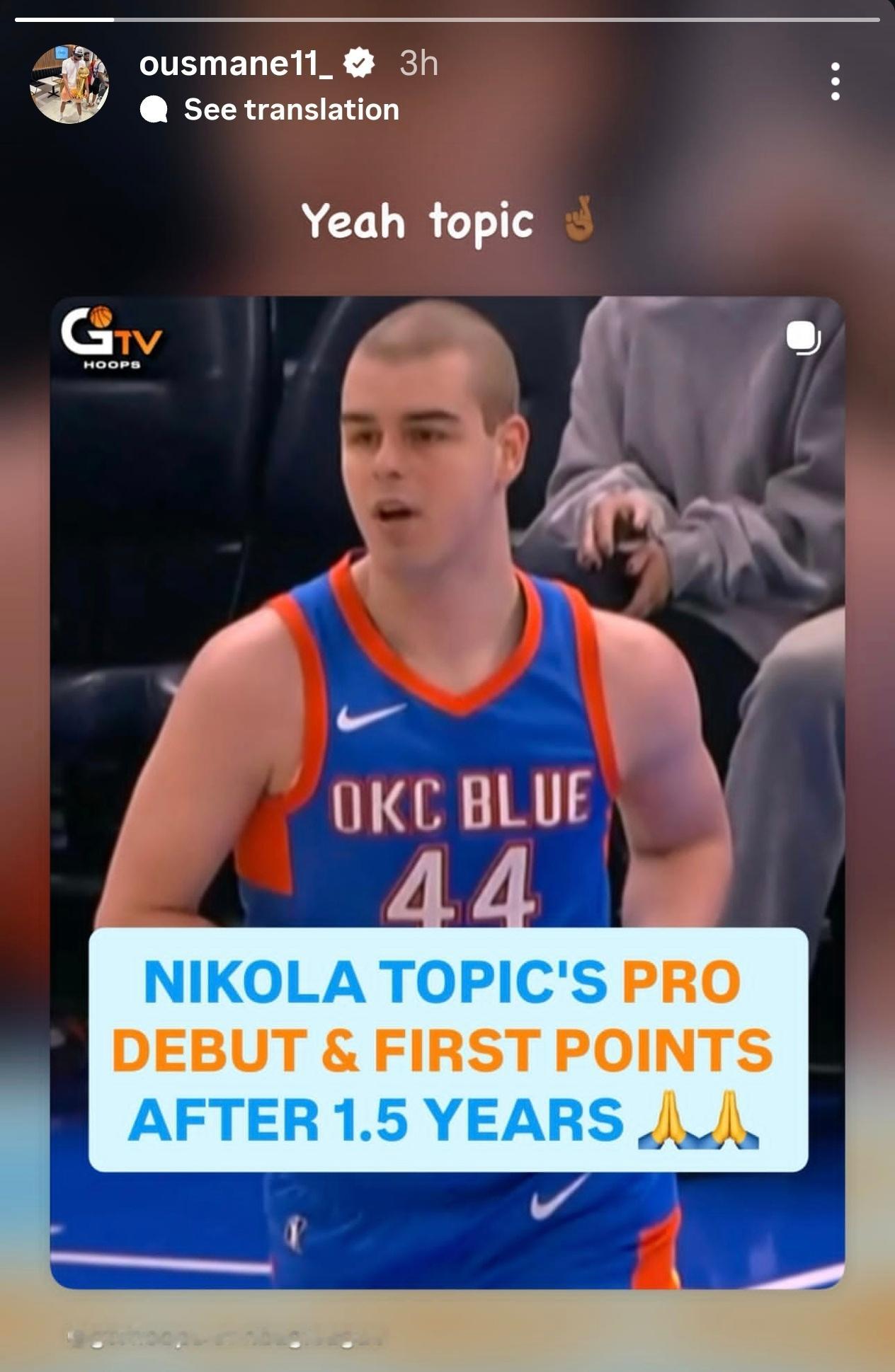 吉昂也转发了托皮奇复出的帖子🥺雷霆战胜湖人雷霆vs湖人雷霆