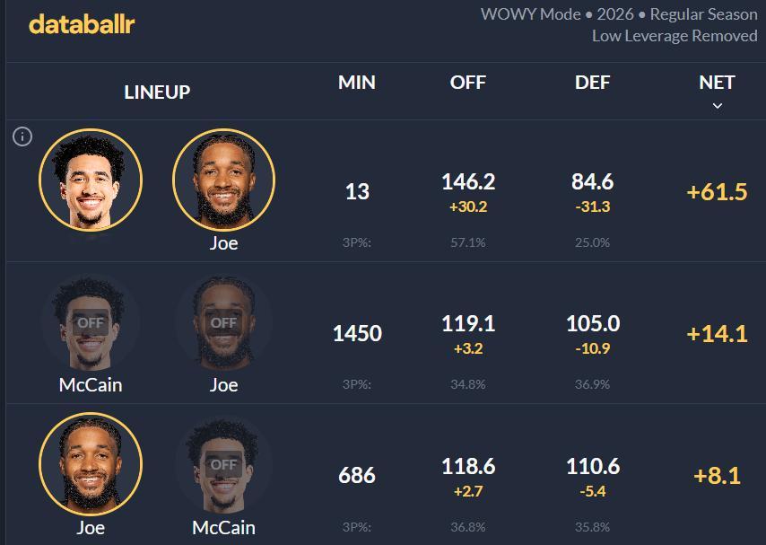麦凯恩加盟雷霆后14分钟内净效率+42.9,和以赛亚·乔同时上场净效率高达+61.5!