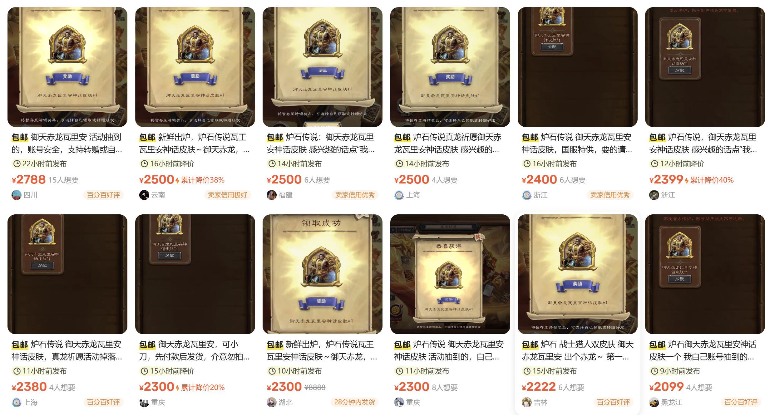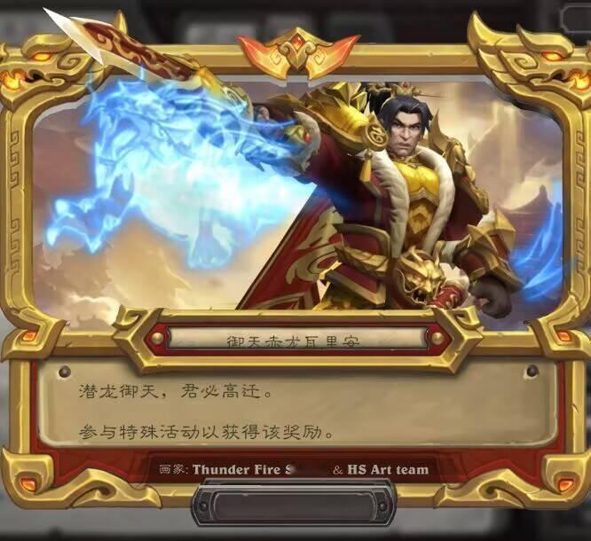 炉石传说 真龙祈愿的御天赤龙瓦里安和大转盘里的青龙降世瓦里安是同一个模型,只是换色了,不过由于它只能0.1%的中奖概率和可转赠送,目前它在某鱼是2000多一个,感觉是雷火有意试探炉石饰品可交易。