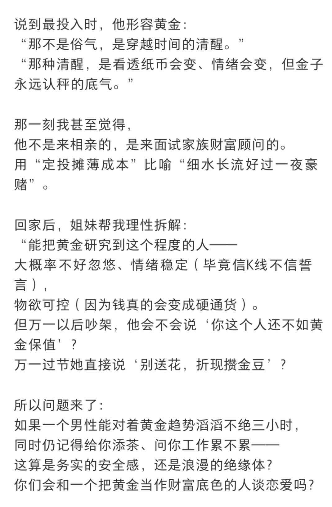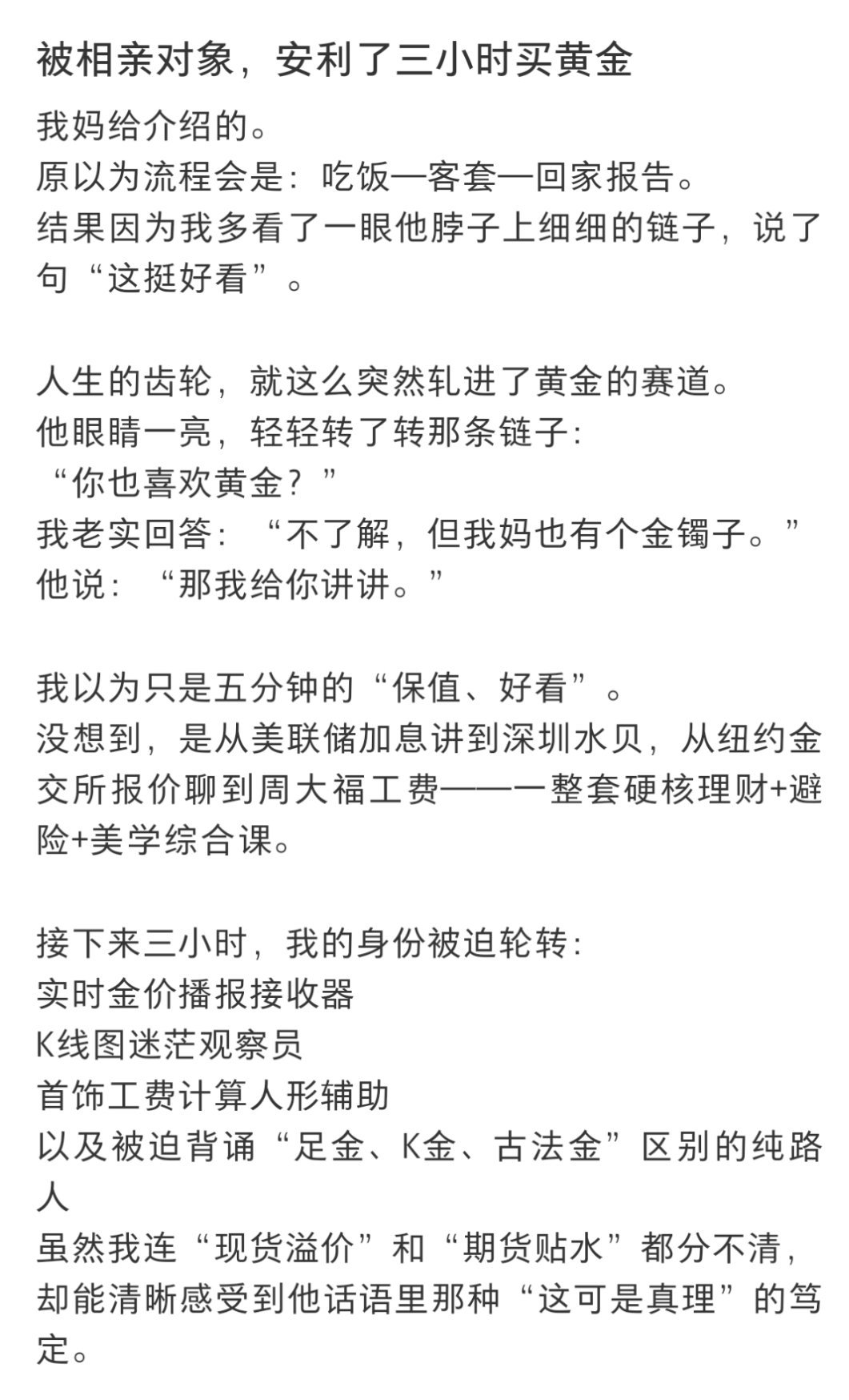 被相亲对象,安利了三小时买黄金