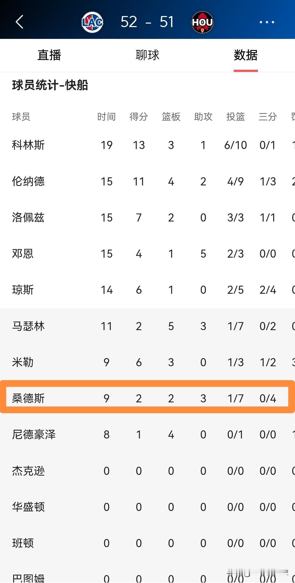 我强烈建议快船主帅泰伦-卢弃用桑德斯!在今天进行的快船和火箭的焦点战中,目前两队的上半场比赛已经结束,虽然快船以52:51领先对手1分,但是桑德斯的表现却非常的糟糕。 在前两节比赛中,桑德斯替补出战9分钟,投篮7中1,其中三分球4中0极其低效的得到2分。 由于桑德斯的状态非常的低迷,因此我强烈建议卢教练在下半场比赛中弃用桑德斯。