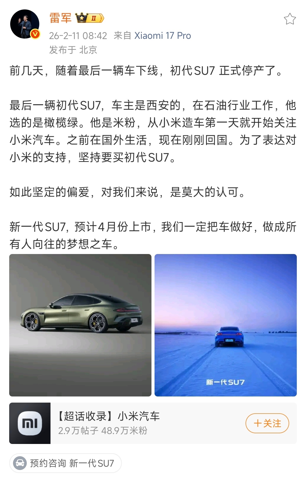 如今第一代功成身退,提前官宣停产,主动给新一代SU7让位,比起“一年磨三剑”确实真诚得多,也让人更期待小米接下来的牌会怎么打
