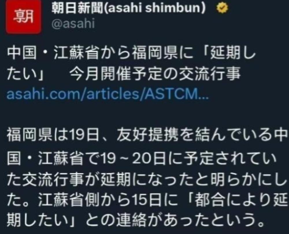 中日之间已经没有“友好”关系了?日本福冈县表示,接到中国江苏省通知,因无法预料的原因,原定于11月19日至11月20日在江苏省举行的交流活动将推迟。 这件事看上去只是改了日程,但放到现在的气氛里,很难只当成一次普通调整,江苏和福冈原本合作不少,活动方向也早就定在创新和医疗健康一类的内容,准备工作做在前面,邀请也发得早,可就在这个节点上突然按下暂停键,很难不让人把它理解成一种信号。 类似的情况不只出现在福冈这条线上,日本其他地方的日中友好项目也在陆续遇到阻力,广岛相关活动被停,山口县和高松市的访华安排接连取消。 当地方交流一批批放缓,原因通常不会只落在地方层面,最后还是会绕回到日本中央政府最近的动作,日本一些政客在涉台问题上不断加码,把台海局势和日本安全强行捆在一起,话说得越来越硬,也几乎看不到愿意降温的态度。 除了口头表态之外,日本在西南方向的军事部署也在推进,岸舰导弹布局更密,宫古海峡这样的关键通道被频繁提及,这些做法对外传递的感觉并不友好,也让中方很难把它当成单纯的防务调整。 在经济和科技层面,日本又把半导体等关键领域的出口管制提前摆出来,动作甚至比美国还快一步,一边说交流合作重要,一边又在核心技术上设门槛。 中日之间并不是没有写进纸面里的承诺,几个政治文件的核心点就是尊重彼此重大关切和领土完整,如果这些最基本的政治前提被不断削弱,地方层面的民间交流就算热情再高,也会越来越难维持正常节奏。 这些年日本国内还有一些引发争议的动向,比如参拜靖国神社的政治表态,以及持续推动的军事扩张讨论,当政治互信被反复消耗,地方政府和企业就会变得更谨慎,因为谁也不想把资源投进不确定的合作里。