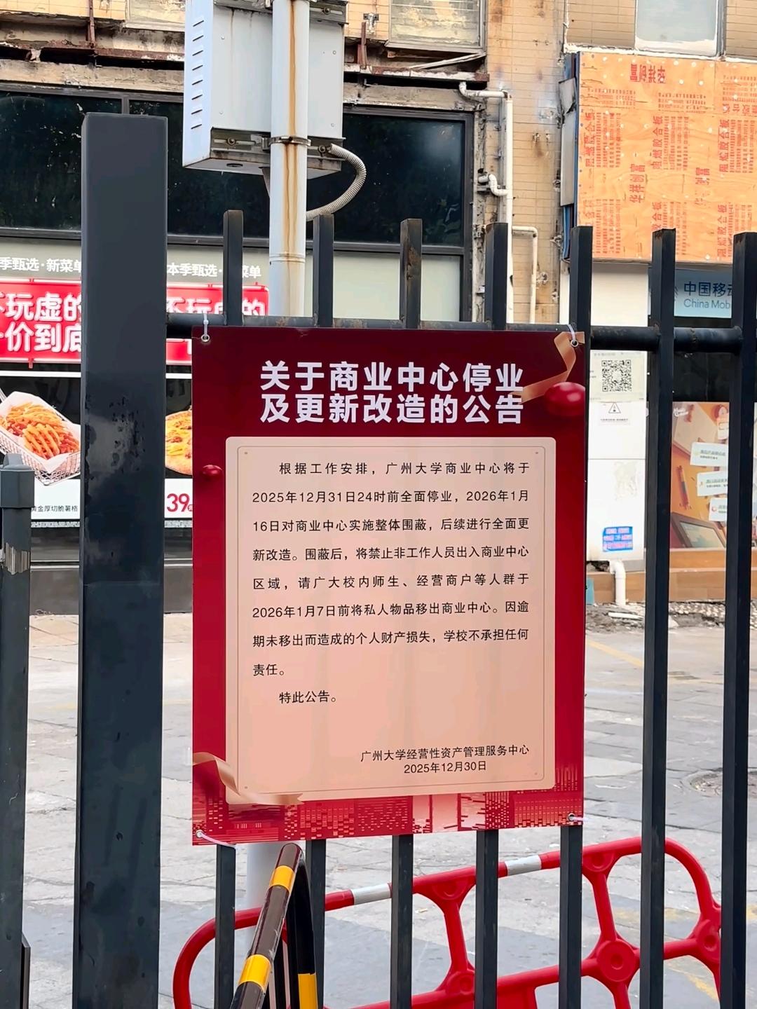 【一代年轻人的青春记忆结束了!】近日,很多广州街坊发现,位于广州大学城的广州大学商业中心停业。10年以前的广大商业中心是大学城最热闹的地方,由于大学城当时商业配套少,因此全大学城的人都跑去广大商业中心玩,小编也去过那边好几次去吃饭。后来gogo新天地分流了很多客源。 根据官方公告可以看到,广州大学商业中心接下来是要进行全面的升级。