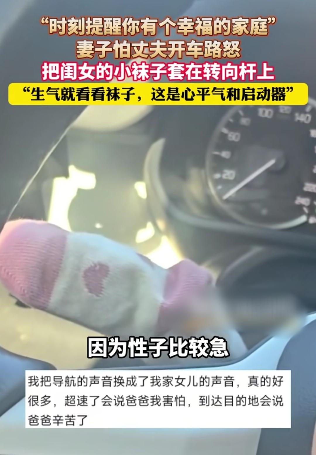 被这对夫妻的暖心瞬间戳中了💘 开车路怒真的是很多家庭的小矛盾,这位妻子没吵没闹,只用闺女的小袜子套在转向杆上,就把温柔的牵挂揉进了日常出行里,这波操作也太会了吧! 小小的袜子轻飘飘,却藏着最软的牵绊。丈夫开车时一眼就能看到,闹心的路况、不顺的驾驶瞬间,都抵不过这份来自家人的温柔提醒,瞬间就把火气压下去,心里只剩满满的甜和牵挂。 这大概就是婚姻里最动人的模样吧,没有针锋相对的指责,只有换位思考的包容。用细碎的美好化解生活里的小摩擦,把家人的爱变成前行的底气,这样的小细节,才是幸福最真实的样子啊~