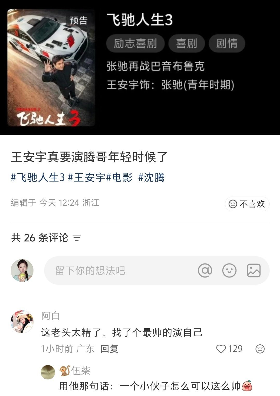 沈腾找了个最帅的演自己 沈腾也太懂了,直接让王安宇演年轻版张驰,少年感和帅气值直接拉满,谁看了不说一句腾哥眼光真毒,把大家最想看的颜值安排得明明白白,确实是真的很让人期待