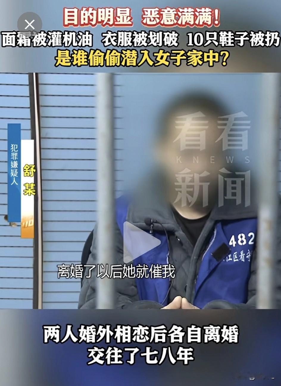 奇葩!男子为报复前女友,偷走室友十只旧鞋还倒机油!真相让人彻底傻眼,还能这样玩? “警察同志,我家进贼了!可奇怪的是,贵重东西一样没少,就丢了十只旧鞋!” 前几天,上海松江警方接到这么一通让人摸不着头脑的报案。吴小姐一回到家,发现客厅里自己那十只穿旧了的鞋——没了! 再加上满屋子的煤气味儿,吴小姐赶紧敲开合租舍友王小姐的房门。俩人一番检查,结果更懵了:首饰、电脑、钱包,全都在。除了吴小姐的旧鞋,啥也没丢。 民警赶到现场,一看更不对劲了——地上、王女士的面霜里、甚至她男友的电动剃须刀里,都被倒了某种刺鼻的液体。一化验,居然是机油! 好家伙,这是来偷东西的还是来搞破坏的? 警察仔细一勘查,发现无人住的主卧阳台没封窗,楼下还有防盗窗可以踩着爬上来。更逗的是,在楼下绿化带里,找到了吴小姐那十只被扔下来的旧鞋。 “看来偷鞋就是个幌子,真正要报复的,是王女士和她男友。” 民警判断。 调监控一看,果然!案发时有个戴口罩的男子鬼鬼祟祟,骑车在小区转悠,还在王女士住处附近消失了半天。一查身份,民警都摇头——居然是王女士的前男友舒某! 这舒某到案后,交代的剧情简直能拍电视剧: 他和王女士婚外恋,谈了七八年恋爱,为了在一起,两人各自离了婚,舒某更是把多年积蓄花了个精光,对王女士百依百顺。 结果处着处着,感情变了味,王女士慢慢疏远他。直到不久前,王女士直接摊牌:“我有新男友了,咱俩分了吧。” 舒某当场心态崩了——七年青春和存款全打水漂?这谁受得了!而且还是两人谈恋爱的时候对方交了新男友! 于是案发当天,他怒气冲冲拎着机油跑到前女友家,发现门锁换了,一气之下徒手爬外墙翻进二楼。 进屋后越想越气,不但倒机油破坏,为了制造“盗窃假象”,还把室友吴小姐的十只旧鞋全扔下了楼…… 目前,舒某因涉嫌非法侵入他人住宅罪已被逮捕。真是应了那句话:分手见人品,冲动是魔鬼。只是苦了室友吴小姐——“关我鞋什么事啊?!” 网友辣评: “这操作太迷了……偷鞋不如偷心,可惜心早就不在了。” “机油倒面霜?这报复伤害性不大,侮辱性极强!” “七年感情最后换一桶机油,这买卖血亏啊!” 两个搞婚外恋的人,为了他们的所谓爱情,各自抛弃原配孩子。结果又被劈腿,不得不说,极其讽刺! 所有的婚外恋都只负责风花雪月,一旦也走进婚姻生活,和你曾经嫌弃的糟糠之妻(夫)又有什么区别?陷在柴米油盐里的才是最真实的。 感情的事勉强不来,触犯法律更是得不偿失。成年人,该放手时就放手吧! 素材来源:看看新闻,侵联删!