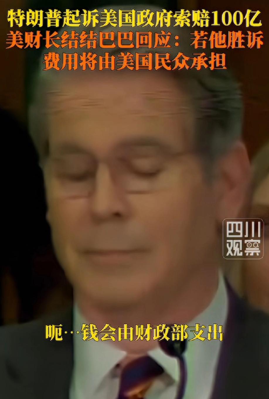 还是特朗普会做生意! 特朗普起诉美国政府索赔至少百亿美元! 2月6日据环球网报道,美民众或将为特朗普百亿美元索赔买单 ! 美财政部长5日在听证会上表示,如果特朗普胜诉,这笔钱最终将由美国民众买单。 特朗普起诉政府,老百姓买单! 这种我起诉,我做主,我拿钱的骚操作属实震惊了全球! 这已经不是一言堂了,是光明正大的从美国政府里抢劫了! 这里让我想起一个笑话,一政客被索马里海盗抢劫,勒索50万美金,政客淡淡一笑,给我开一张5000万的勒索清单,我私下再给你50万! 看到没,美国的政客只是比那些海盗穿的光鲜亮丽一点,实则他们做事的套路和海盗几乎一模一样! 而且他们的套路可比海盗抢劫的手法高级多了,不仅合法,而且拿钱的数量可比海盗多的多了!