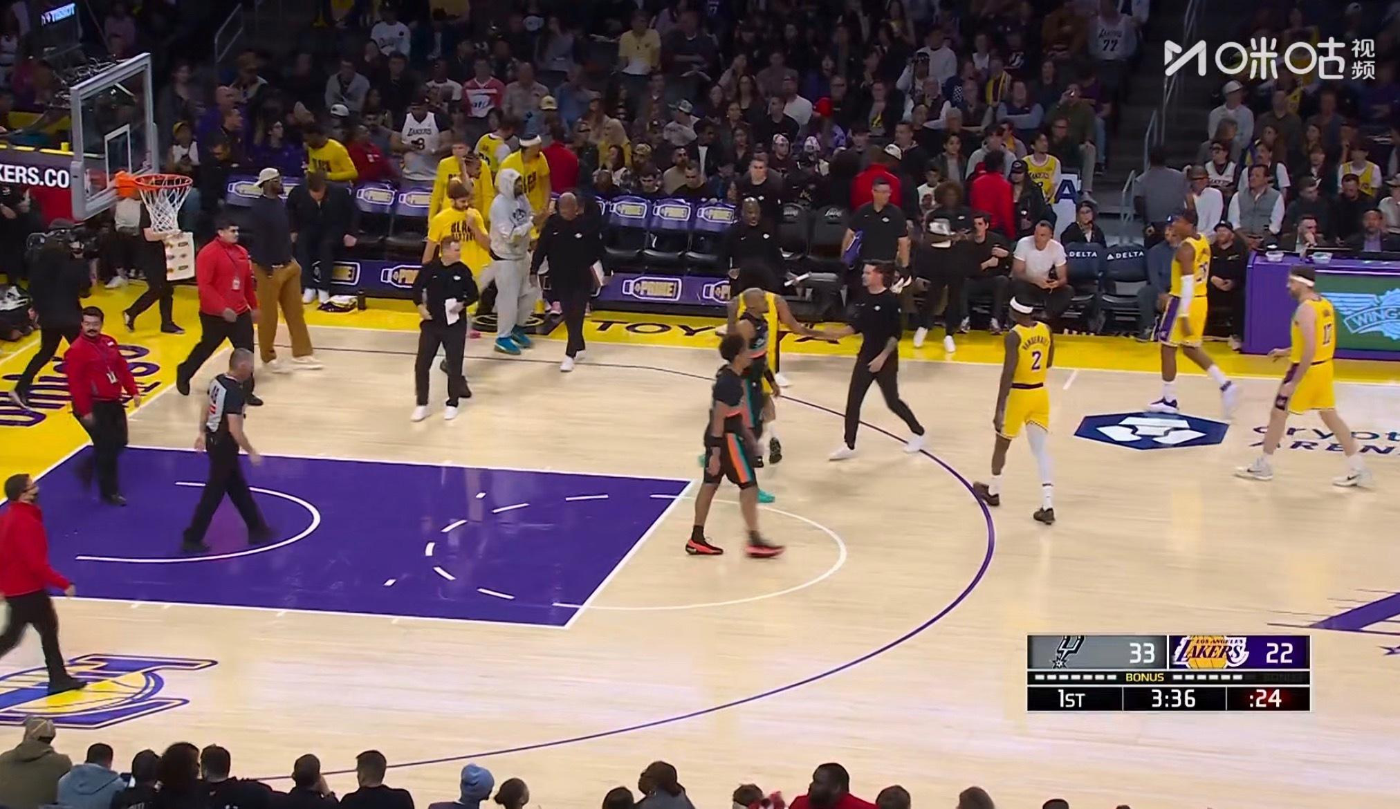 湖人被打停,内线让人溜进去了。 马刺vs湖人