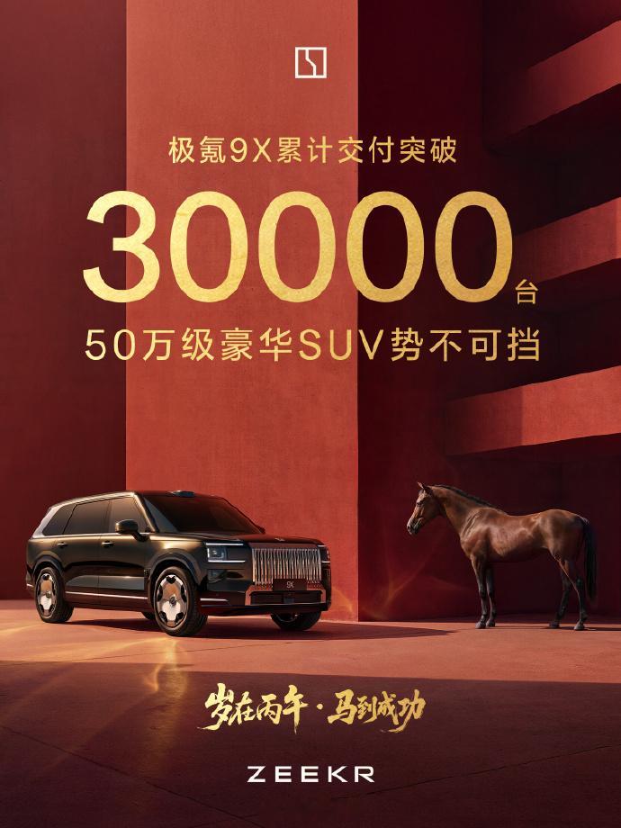 “杭州湾库里南”极氪9X 连续三个月获50万级大型SUV销冠,累计交付破3万台