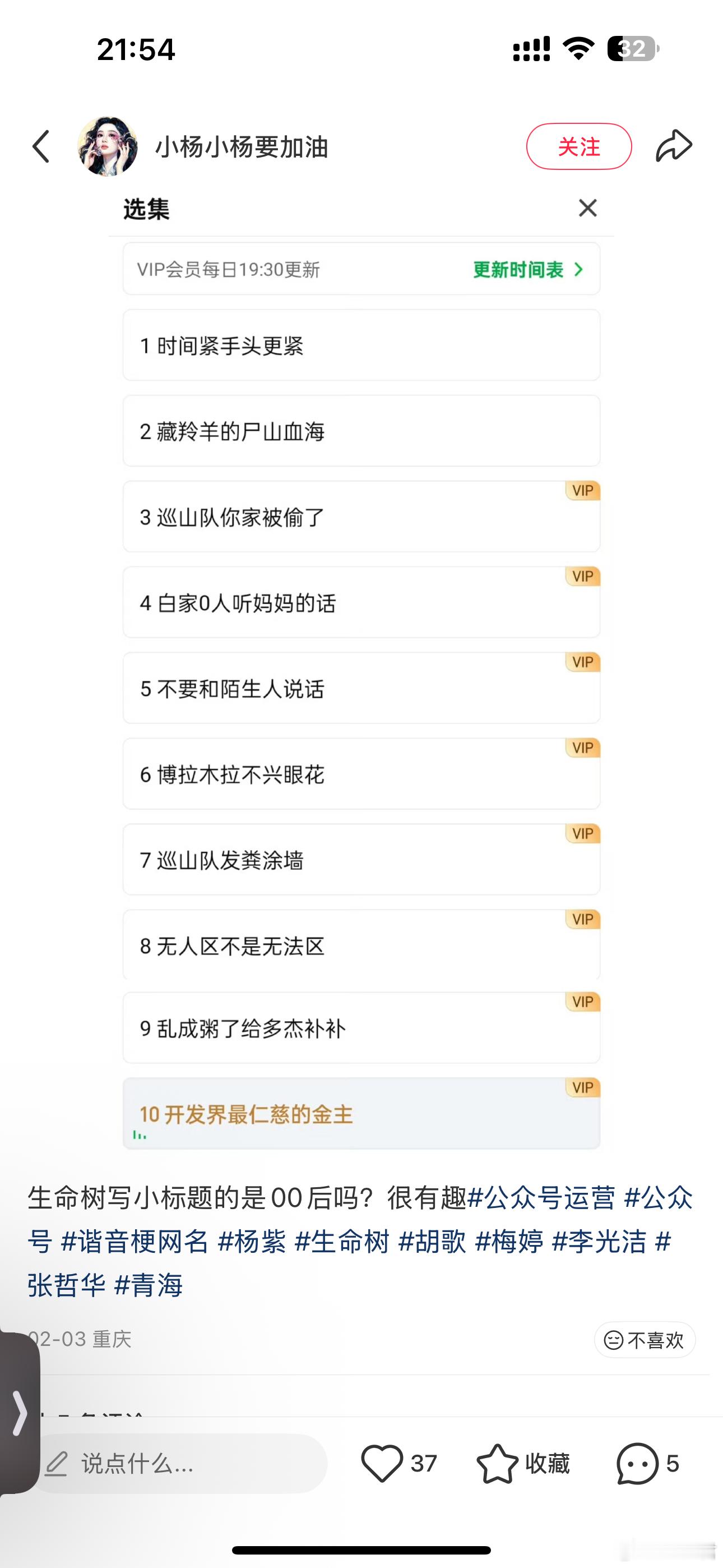 00后混入生命树了每天蹲生命树不光看剧情,还蹲一个神级分集标题,00后小编稳定
