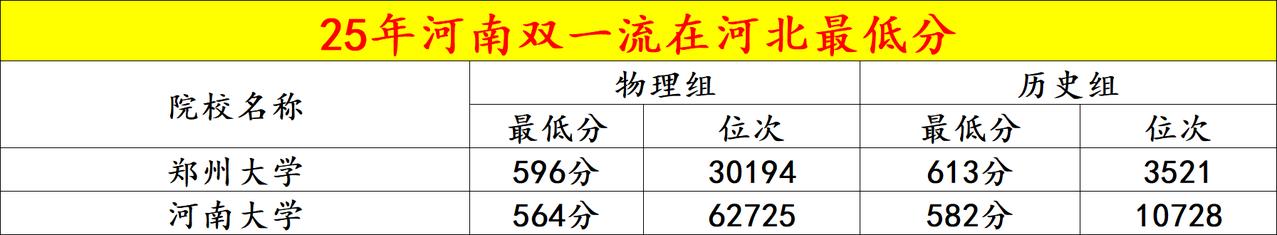 最低多少分,能上河南的双一流大学?2025 年,河南有两所双一流在河北招生:郑州大学和河南大学。 物理组录取最低分是 564 分,历史组最低分是 582 分,这两个最低分,全都出现在河南大学。 下面咱们简单说说,这两所学校到底强在哪: 郑州大学有三个双一流学科:化学、材料科学与工程、临床医学。 化学在有机化学、催化化学方面实力很强 材料专业在超硬材料、纳米材料领域国内领先 临床医学更是河南医学的天花板,肿瘤、器官移植这些方向都特别厉害 河南大学双一流学科是生物学,在棉花生物学、作物抗逆研究上,达到了国际先进水平。另外像汉语言文学、历史学、化学、地理科学这些专业也都非常强。而且考上河大,你还能和赵九章、王立群、任鲁豫这些名人成为校友。